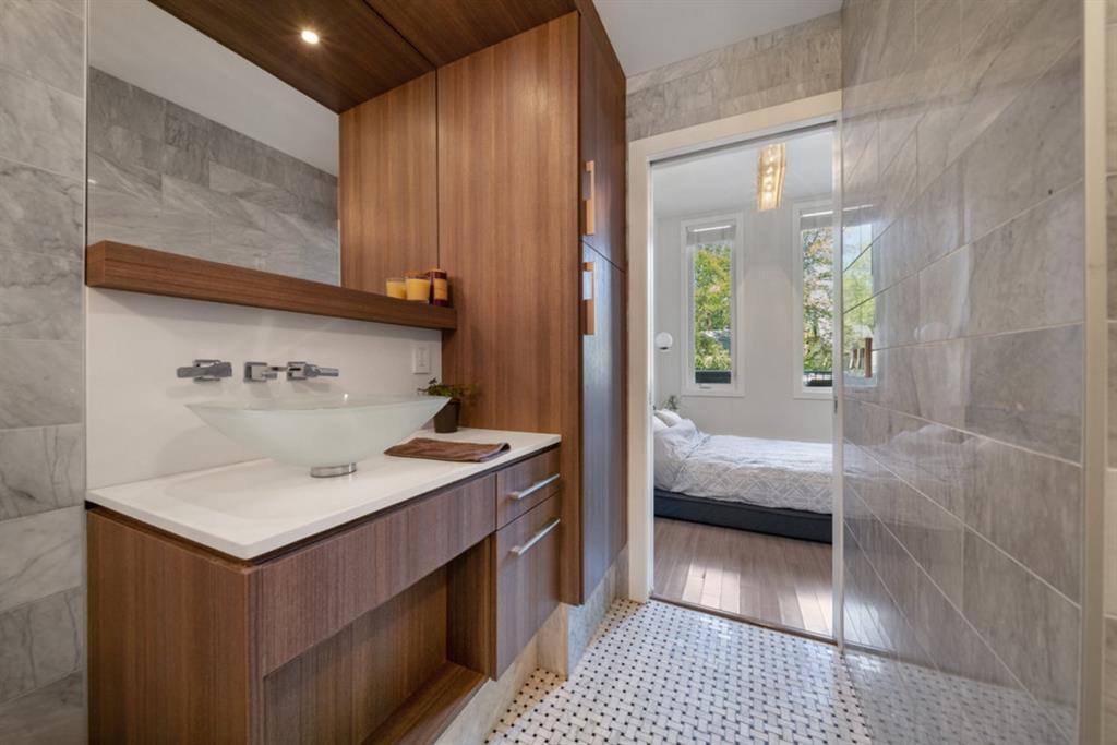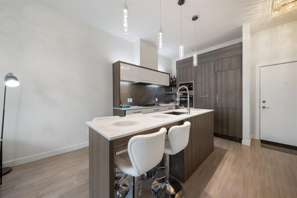 LUXURY LIVING IN WEST HILLHURST – The premium quality, spacious and well-appointed layout throughout this 1 bedroom | 4pc bathroom condo creates a place you want to call home. The chef’s kitchen has ample storage, counter space (quartz), integrated stainless steel Liebherr and AEG appliances (including 5 burner gas cooktop). And, opens to the living room that fills with natural light from the oversized windows. The primary bedroom has a full-sized closet, direct access to the 4 pc bathroom, and large windows. The lavish finishings carry into the bathroom with a walk-in shower, deep soaker tub, insuite laundry, lots storage, and Carrera marble accent the room. Some of the superior finishes and features are engineered hardwood, designer light/plumbing fixtures, large patio with a gas line, private entrance and convenient street-side access, assigned storage locker (adjacent to the unit), Titled underground parking, etc. The SAVOY offers a large rooftop patio with a panoramic tree-top view, secure parking/entrance, indoor visitor parking, bike storage, pet friendly (board approval). Living here, you’ll have a prime location just a few steps from the local amenities, Bike Score 91, quick access to everything from downtown to getting in-out-and-around the city. This home offers high-quality living, convenience, and affordability. 3D Tour is available.