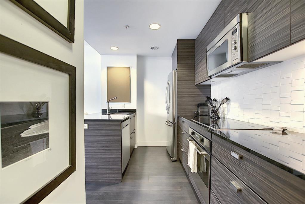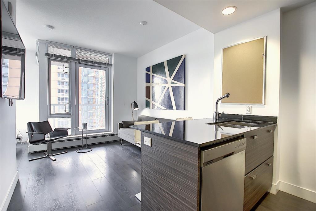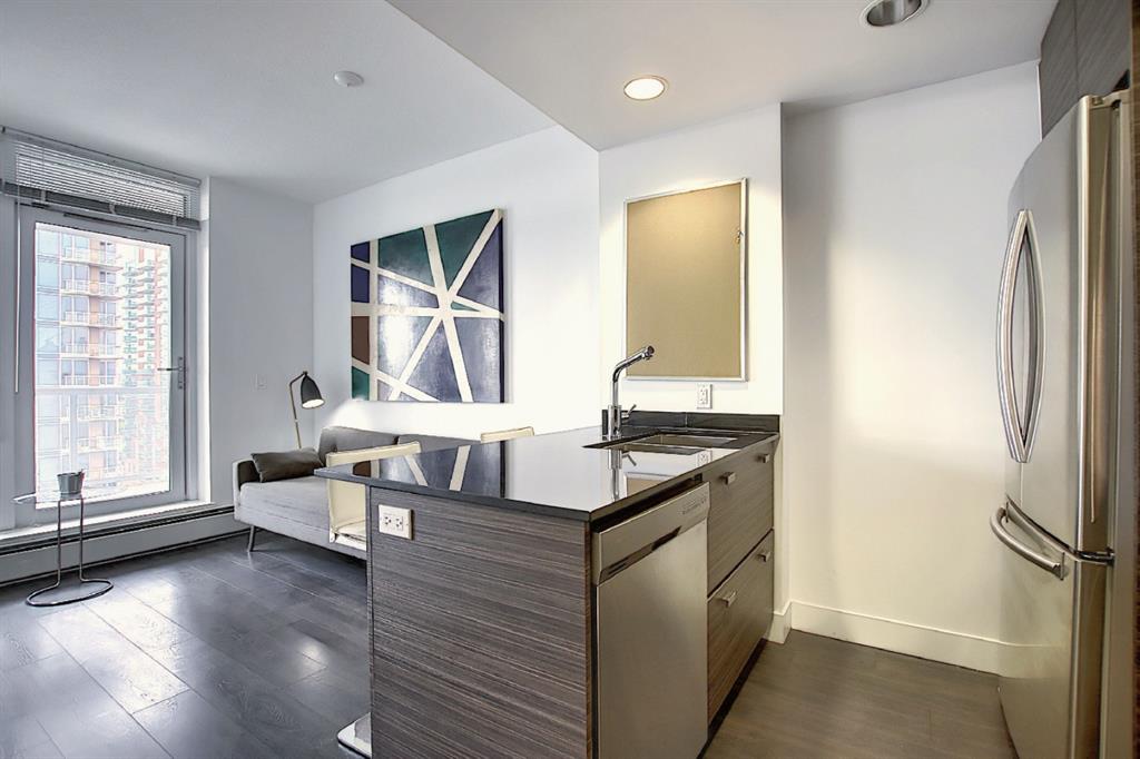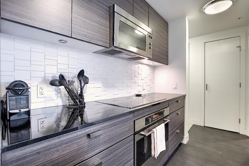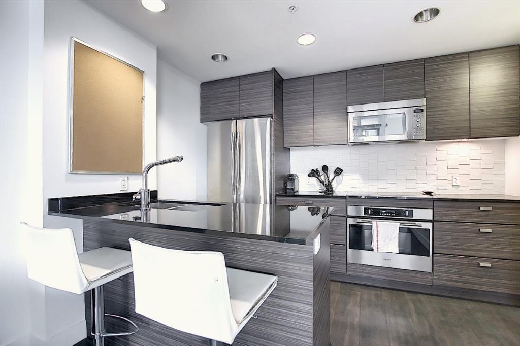 INCREDIBLE LOCATION AND VIEWS!! NOT ONLY WITH PARKING, IT’S TITLED AND HEATED UNDERGROUND PARKING, PLUS TITLED STORAGE LOCKER!! DRAKE IS A LEED GREEN CERTIFIED HIGH RISE, located in the sought after Beltline District JUST OFF 17TH AVE ACTION! One of the Most Desirable Buildings Downtown! DRAKE’S Innovative Design caters to those who desire Downtown Lifestyle & access to the City’s Trendiest Restaurants, Lounges, Cafes, & Boutiques! Block and a half off 17th Ave SW in the Heart of the City’s Culinary and Design District! A short walk to the Financial Core. This 11th Floor West Facing Unit was developed by Grosvenor, having 300 years of Development Experience, bringing a touch of London Design into Calgary! Designed by BKDI, with Wide Plank Espresso Laminate Flooring, Stone Countertops, Contemporary Cabinets, Stainless Built In Appliances, 9′ Ceiling Height, Floor to Ceiling Windows, In Suite Washer & Dryer, and a Large West Facing Balcony with Open Views! This unit has Titled Storage & One Titled Parking Stall, Heated & Underground! Furniture can be included, making it Turnkey!! Ideal for your Starter Home, or for a University Student, and also Corporate Rental! Owner has used sparingly when in town on travel, keeping this unit in Amazing Condition! Excellent Property Management in place!! Come take a look and walk the area!! A Dog Lover’s Building!!