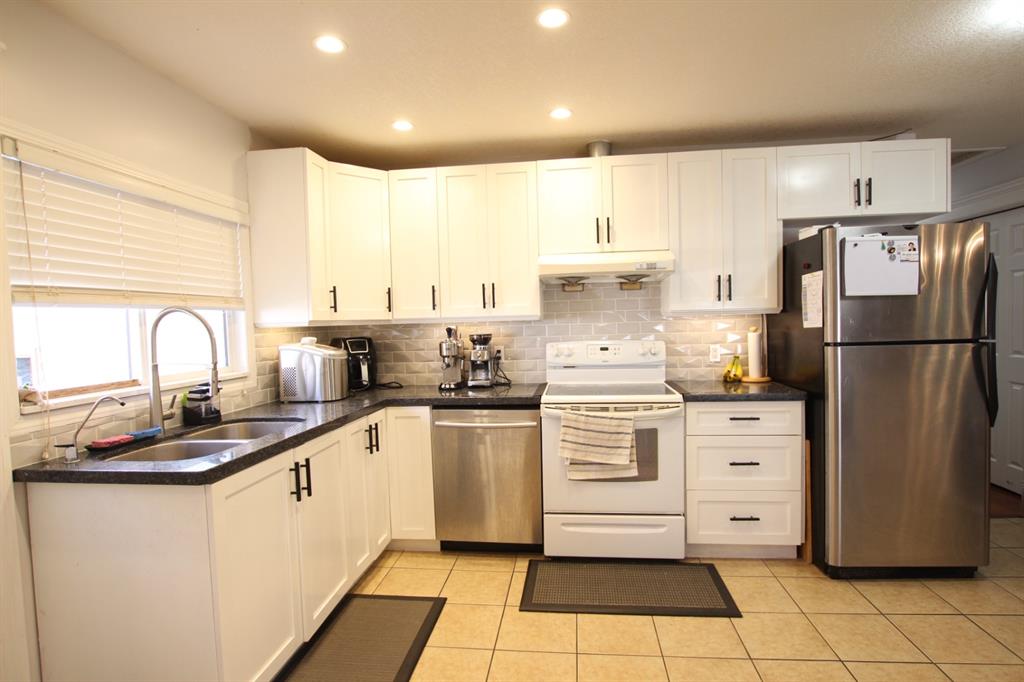 This renovated bungalow is located in a walking distance to school, playground , transportation and shopping. Hardwood flooring, throughout main floor, Ceramic tile in kitchen, updated kitchen cabinets with granite countertops, Over 1,300 sqare feet on main floor, Living room, formal dining room, Open kitchen with island, 3 large bedrooms, master bedroom with ensuite bathroom. Separate entrance to illegal basement suite with 2 bedrooms, family room and second kitchen. sunny backyard with large sundeck and patio area, Over sized double garage fully fenced backyard .