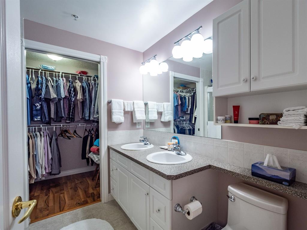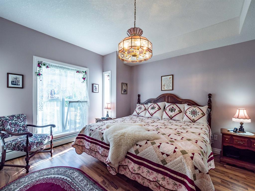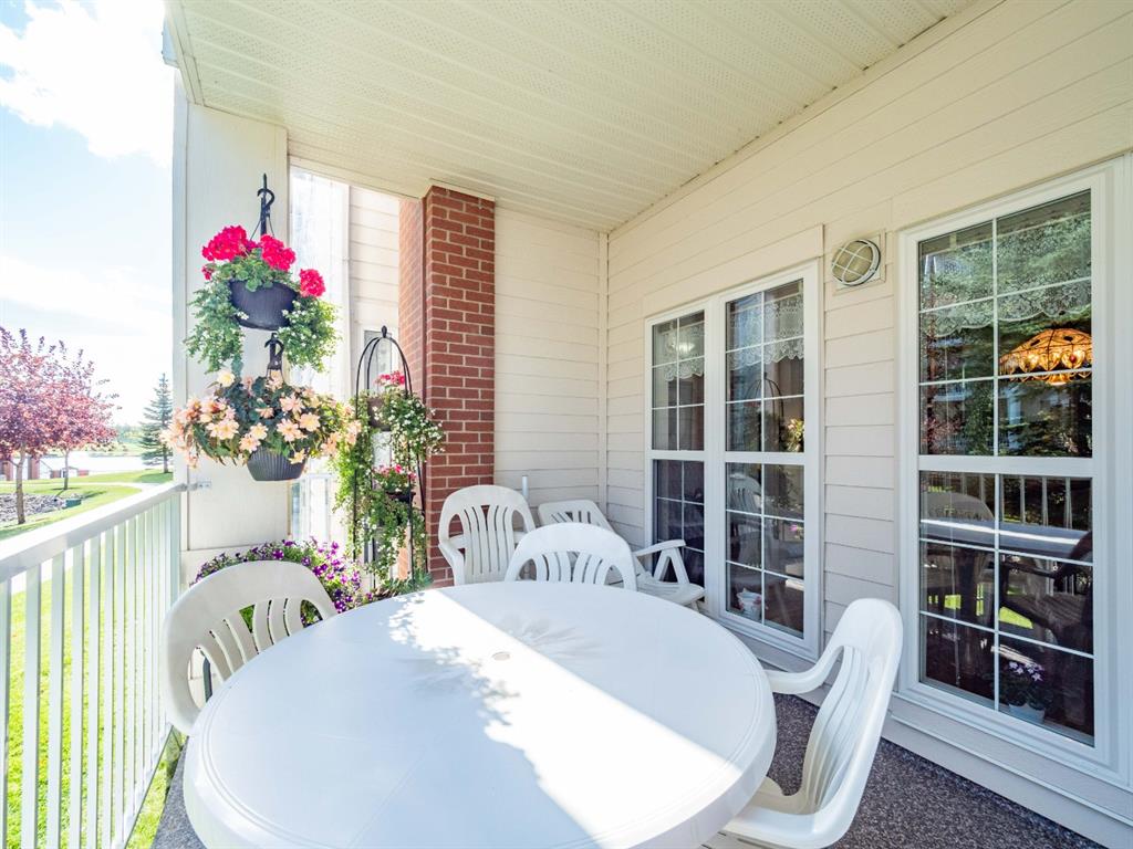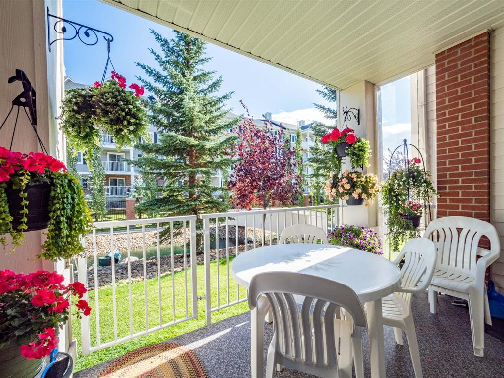 Are you looking for a lifestyle change? This 40+ complex is ready for this lifestyle incl an indoor pool/spa, movie theatre, fitness room, bowling alley, dance room, library, games room, guest suite, workshop, and car wash! Common spaces are well taken care of w/ lush gardens, scenic ponds and relaxing views. This END UNIT has a ton of natural light, with views of the pond, waterfall and the lake. Conveniently location next to elevator and close to parking stall! 2 bedrooms + Den complete this unit, make it extremely tranquil. Imagine having your morning coffee and breakfast here on your private balcony, listening to the waterfall and the babbling brook. Living room has large windows to allow that natural light in. This unit has upgrades, incl cupboard in the utility room, screen door, gate on the patio, flooring, cabinetry in 2nd bathroom, 4 glass doors, blinds, flooring in the storage unit. Dishwasher and Washing machine are also new. Parking is titled, and is found underground, as to keep the snow from your car. This unit and building must be viewed to be truly appreciated, so book your private viewing today!