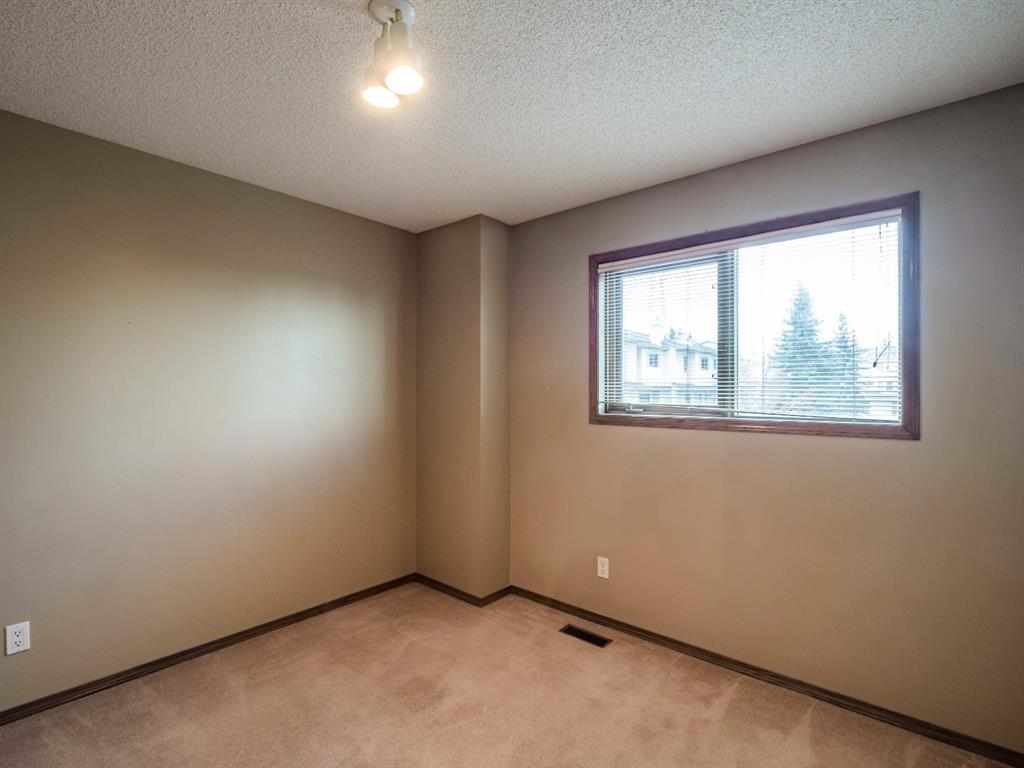 An excellent price for this cozy townhouse in very desirable Prominence/Patterson, A well managed complex & the best location backing SOUTHWEST onto a fully treed Park. This home is spotless. A large bay window in the spacious, bright south facing eat-in kitchen. The Living room and Dining areas are spacious and bright with a corner woodburning fireplace & bay window. Upstairs you have two good size bendrooms plus a bonus room, perfect for a home office, The cheater ensuite is huge with a corner soaker tub & separate 2-person shower. There is a full basement with roughed in bath ready for your custom development. This is a well built, popular comlplex, with great access to transit and LRT. Parking is directly in front of the unit, as well as 2 visitor stalls. A well maintained complex in an quiet location
