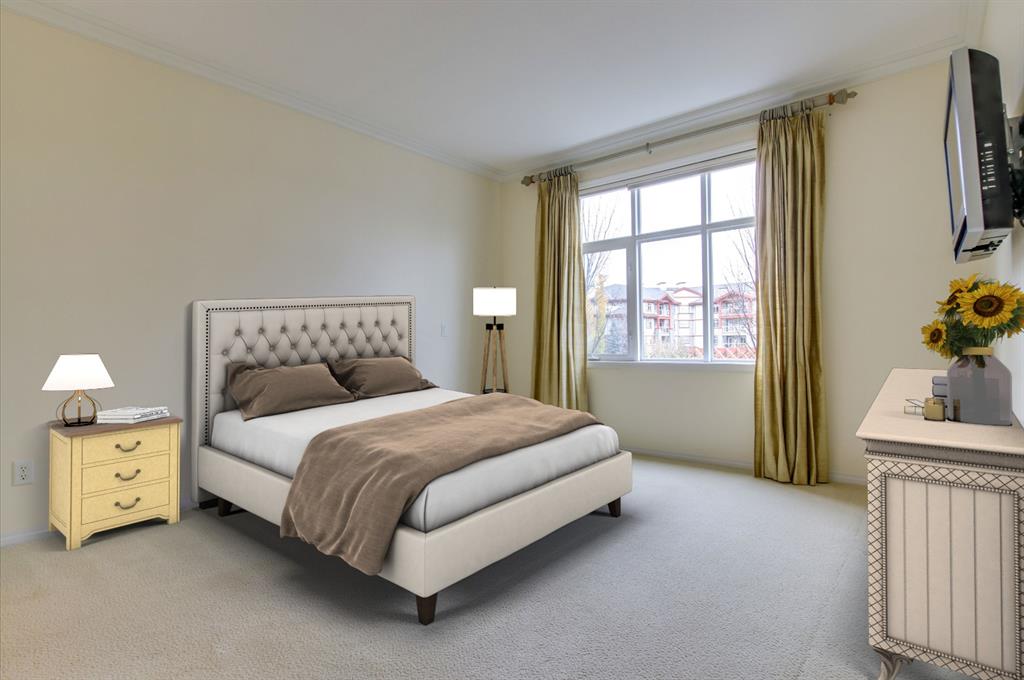 Perfectly located with great access to shopping, schools, and major transportation routes, your new home in Bonavista is move-in ready! The open-concept living space presents plenty of opportunities for rest & relaxation, including a balcony to enjoy the summer weather and a gas fireplace in the stately living room. This dwelling boasts a spacious Master Bedroom with walk-through closets, and a full, 4-pc ensuite. The spacious second bedroom can also work as a flexible office. The fully-equipped kitchen with pantry, breakfast bar and ample quartz counter space is sure to please any chef! Situated in the middle of the complex a corner suite, away from traffic noise this home will appeal to all age groups. Enjoy your peaceful surroundings on your private balcony or entertain in the clubhouse with kitchen, card/games tables, stone-faced fireplace, fitness area, theatre and guest suites. This home includes two titled parking stalls plus a large storage unit. The underground parkade also includes a car wash bay and bike storage. With Avenida Place right across the street and South centre mall, Trico Leisure Centre, transit, LRT, golf close by, this residence has it all! Call today for your private viewing today!