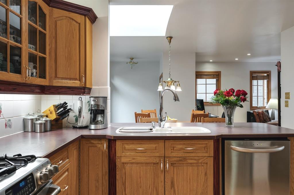 Welcome Home to Chinook Park! Over 3,800 sq ft of updated and beautifully maintained living space. This 3 bedroom, 3 bathroom home was made for entertaining. Off the main foyer, the living room with wood burning fireplace with gas starter & dining area are separate from the rest of the house. High beamed ceilings and large windows make this space bright and open. The galley style kitchen with stainless steel appliances and gas range opens to the breakfast nook and family room with gas fireplace and garden doors leading to the front deck. A skylight floods this area with natural light. The master suite is complete with a large 3 pc ensuite with walk-in shower. An office, 4 pc bath, and an additional bedroom finish the main level. The basement offers a family room with gas fireplace, large rec room with snooker table and wet bar, a 3rd bedroom and 3 pc bath. The large laundry room has extra storage, utility sink and a work bench. This home is wired for sound with speakers throughout from a central stereo with the main floor and basement family rooms featuring built-in sounds around speakers. Refinished hardwood floors & recessed lighting throughout. The back yard offers a large aggregate patio with natural gas lines and wired speakers, mature trees, and flower beds. The SW facing front deck is perfect for morning coffee, and large enough to dine alfresco! Mechanics will love the triple detached garage with lane access. Heated with thermostat control and a 220 volt sub panel. Situated on a quiet street & walking distance to the Rocky View Hospital, Chinook Park Elementary and Henry Wisewood High School. Easy access to 14th St & Glenmore Tr. Close to transit, Chinook Centre and all amenities.
