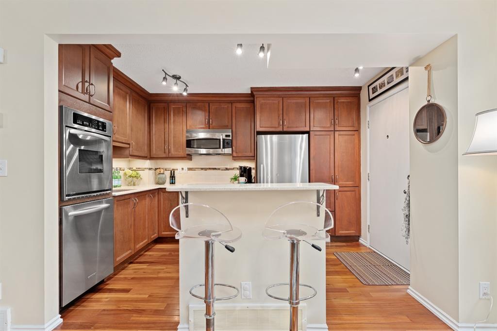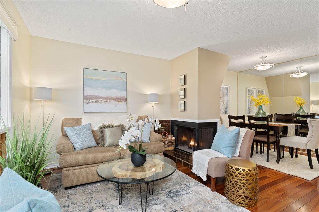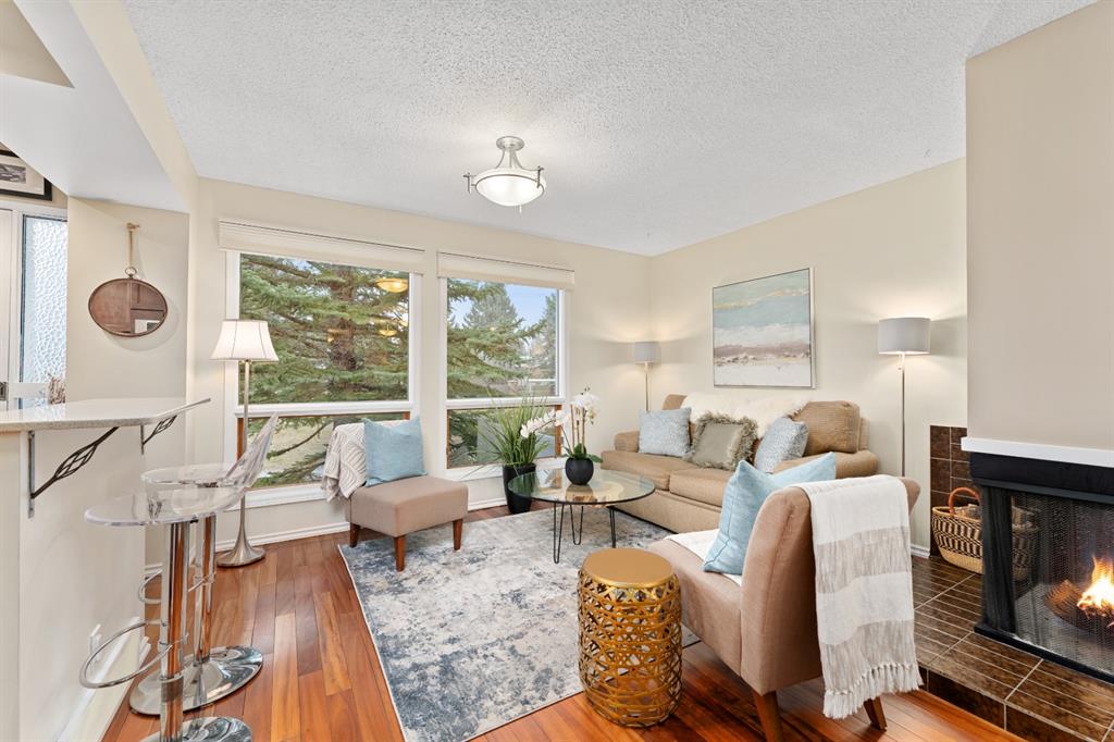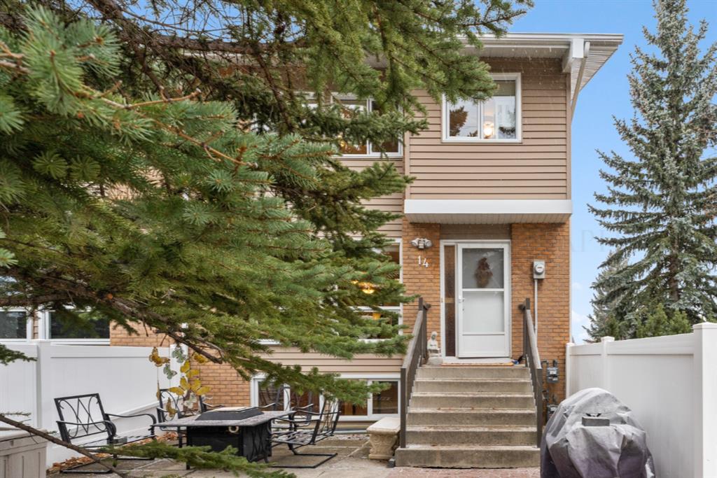 Warm and inviting, and offering the ultimate in privacy! Sweetheart of a townhome located next to Bowmont Natural Environmental Area… END UNIT features 1200 sq on 3 levels, 2 storey plus WALKOUT lower level….FULLY DEVELOPED WITH WIDE OPEN MAINFLOOR, CONTEMPORARY KITCHEN WITH HIGH END S/S APPLIANCES, MIELE INDUCTION COOKTOP, 2 CONVECTION OVENS, QUARTZ COUNTERS, BREAKFAST BAR….REAL TIGERWOOD HARDWOOD FLOORS, NEWER WINDOWS, CUSTOM BLINDS, WOOD-BURNING FIREPLACE….front entrance features many practical ideas (small coat closet, broom closet)….upper floor has large master bedroom with walk-closet, second bedroom, main bath and linen closet…..lower has big bedroom, 2-pce bath, tons of storage, laundry and coat closet ….walkout opens to dedicated parking stall in covered carport….overflow parking lot for residents… …unit sides on street which facilitates all guests, etc. will have a parking spot like any other residential street….front entrance has large patio and green space for lots of outdoor entertaining…..well maintained with low condo fees. Home is 1/2 block from the ravine, boardwalk, and bike/walking paths, views of the Bow River, C.O.P., and the mountains! Bike to work, U of C, Foothills! Across the street from SILVER SPRINGS COMMUNITY CENTER, OUTDOOR POOLS, BOTANICAL GARDENS, BUS STOP , WALK TO SCHOOLS AND SHOPPING!! Easy access to Crowchild and Stoney Trail…..Excellent turnkey property for singles, empty nesters and professionals alike. Just move in and fall in love with your new home!!