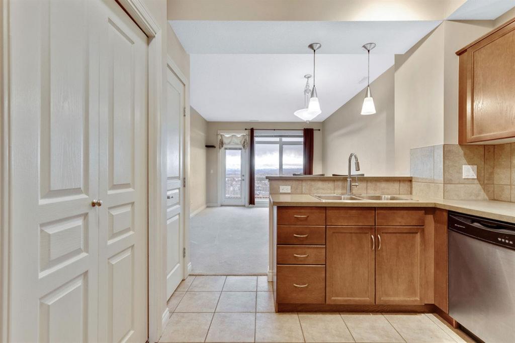 Your new home boats a spectacular, unobstructed mountain view from both levels and from the balcony. This southwest facing 2 bedroom, 2 bath unit offers a great layout, 9′ ceilings on both levels, titled underground parking and titled storage locker that are easily accessible from the elevator. Upon entering you will notice the fabulous view, open floor plan, and the functional well-layed out kitchen with an abundance of cabinetry and counter space, stainless steel appliances, pantry and breakfast bar. The sun-filled living/dining room is open and spacious, great for hosting family and friends and has easy access to the large (12’4×7’7′) private balcony that brings the mountains and the views even closer. There is also a 2 piece bath on the main floor, handy for guests. On the upper level you will find 2 generous sized bedrooms including the primary one also with a fabulous view and a walk in closet while the other bedroom has dual closets and is located on the opposite end. In between the 2 bedrooms you will find a convenient laundry room and a full bath. Some of the other great features of this home are wrought iron railings, newer fridge(2019), newer hot water tank(2018), additional storage and much more. The low condo fees also include heat, water, sewer, and the fitness center and the use of the visitors parking for your guests. This sought after, well run complex known as Blue Sky is close to the LRT, shopping, Rocky Ridge Centre, the NW YMCA, all other amenities and easy access to major thoroughfares. Please note that the photos that contain furniture are virtually staged.