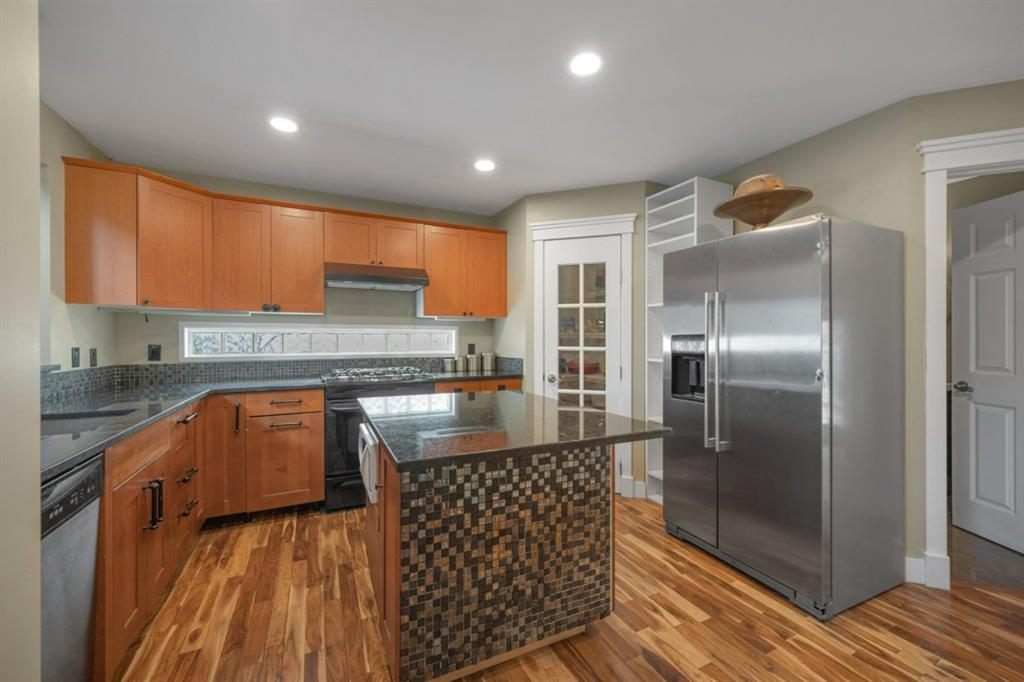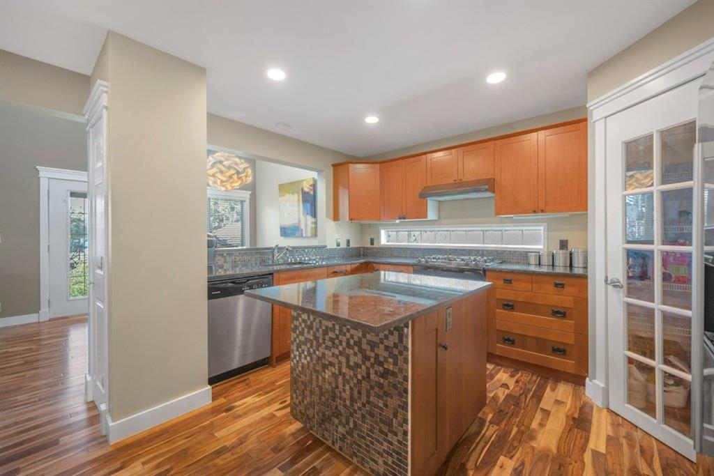 Executive custom built 2-storey with fully developed basement located in the heart of Inglewood. Built in 2001 and updated with a contemporary design inside. Must see to appreciate. Total of 4 bedrooms plus a flex room/office or bedroom and 4 bathrooms. Very bright and open plan. Acacia hardwood floors throughout the main floor. Formal living room. Main floor flex room, ideal for a office or bedroom. Gourmet maple kitchen with centre island with granite countertop, designer tile backsplash with stainless steel appliances open to a large dining room with 2 storey cathedral ceilings and great room. 3-piece updated bathroom and laundry room. French door leading out from the dining room to a large deck and beautiful landscaped west backyard with firepit and fireplace. Gorgeous staircase leading upstairs to a large master bedroom and huge walk in closet and 3-piece ensuite with claw tub. French door off master bedroom to a small deck. Good sized 2nd bedroom with a 2-piece ensuite. Beautiful loft overlooking the great room and dining room. Separate entrance and staircase leading downstairs to an updated wet bar/kitchen or illegal suite with large family room or recreation room with 4-piece main bathroom and laundry room. Pride of ownership shown throughout. One block away from Bow river and pathways and Inglewood shopping. Ideal for the professional couple or owned on the main floor and second floor and rent down or a great family home. Exceptional Value!