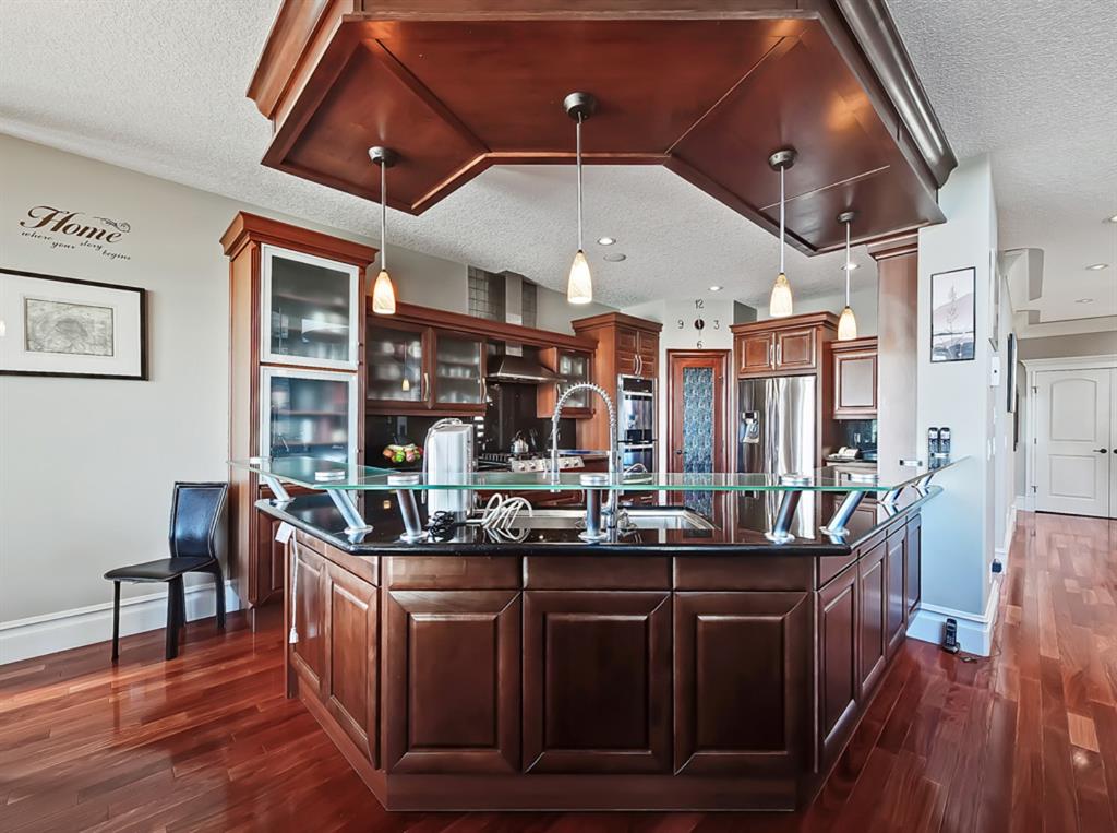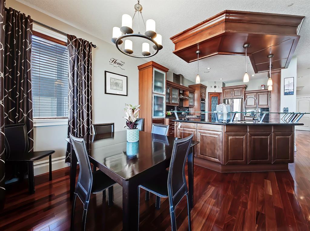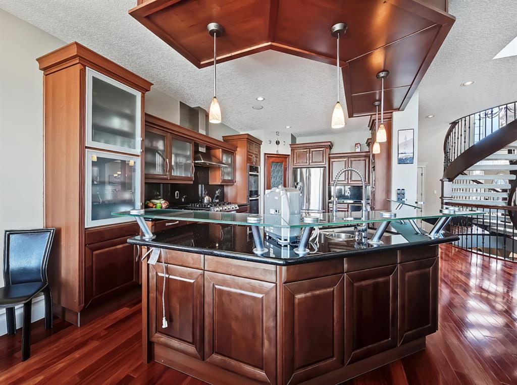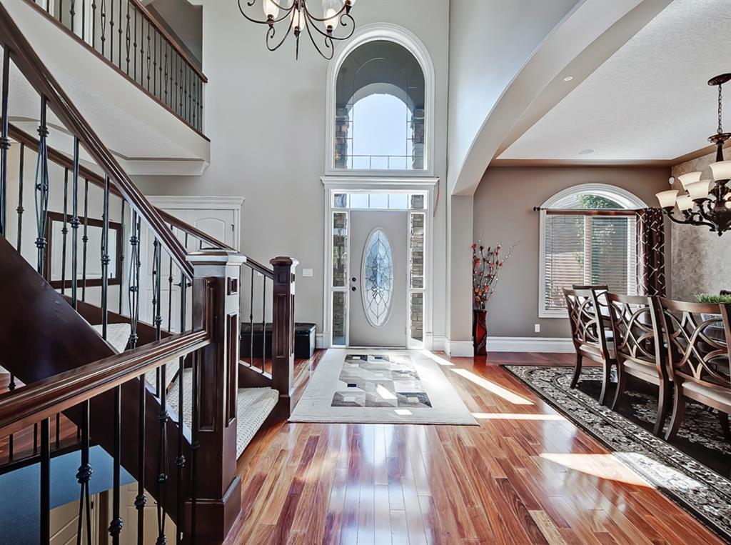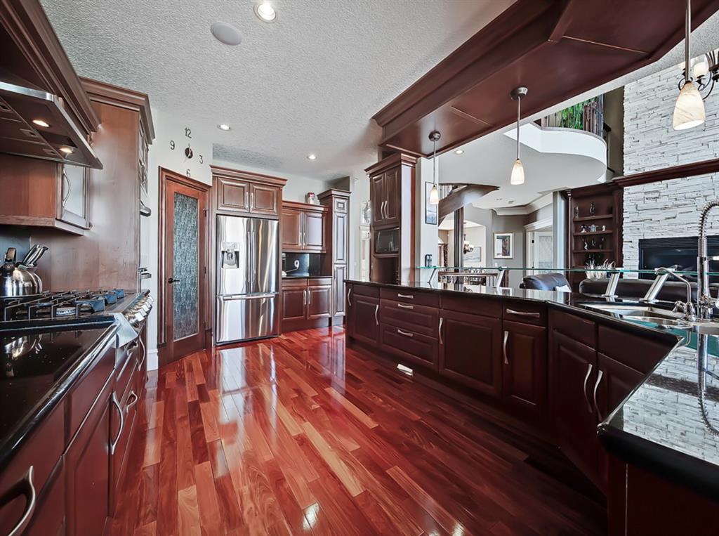 Welcome to Coulee Estates, the crown jewel of Cougar Ridge. This stunning home features 5 bedrooms, 4.5 bathrooms, gorgeous river valley views, basement movie theatre, upstairs bonus room and over 5065 SqFt of functional living space! This executive 2-storey home boasts high-end finishing from top to bottom. The picturesque 2-storey entry way has wonderful sight lines and a stunning spiral staircase, gleaming Brazilian cherry hardwood throughout the main floor, den with custom built-in cabinetry, formal dining room, stately great room that is open to the second level, and a sunny breakfast nook. The kitchen is a chef’s dream with extensive cabinetry and counter space, gas range, double-wall mounted ovens, granite countertops and walk-through pantry. The main floor is completed by a fully equipped laundry room (with laundry chute) and a powder room. The upper level hosts 3 spacious secondary bedrooms and split 2 full bathrooms. The luxurious primary bedroom has a private balcony to take full advantage of the river valley and city views. The upstairs is completed by a bonus room built over the garage. The fully finished walk-out basement is exquisitely finished with a theatre room, cozy family room, large fifth bedroom with ensuite bath, and a spacious, entertainment sized bar area. Enjoy the private patio area from the walk out entrance complete with a well maintained hot tub, and beautiful river valley and city views from the deck and master bedroom balcony. This well located enclave of Cougar ridge is quiet, close to endless paths and has quick access to all the amenities that 85th has to offer! This home is a must see!