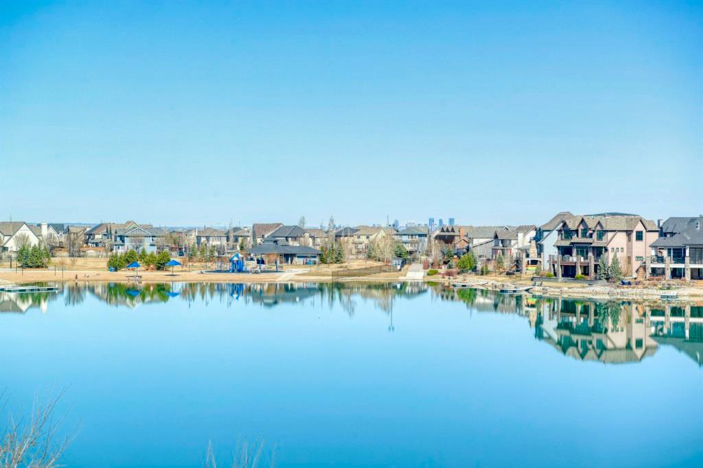 Rare opportunity for a superb unit in the Reflections Building located in prestigious Westman Village. This 1860 square foot penthouse overlooks Mahogany Lake with city and mountain views. Contemporary design must be seen to appreciate the quality, details and extensive upgrades not found in many properties in this community. As you enter the unit, the floor to ceiling windows ensures a glow of natural light along with an amazing view of the lake. High-end walnut hardwood flooring throughout this home and marble flooring in the bathrooms and laundry room. In-floor heating as well as central air conditioning guarantees your comfort all year round. Gourmet kitchen has upgraded Wolf and Sub-zero appliances, an extended large island with an eating bar, sleek upgraded cabinetry and loads of prep/cooking surface. Dining area has enough space for a large table which seats at least 8 (10) friends and family. French doors lead to one of the 2 outdoor terraced areas one south and one north lake facing for best of both worlds in this home. Both balconies are covered and have gas lines for bbq or heaters to ensure all season enjoyment. Large master suite has a 5- piece ensuite with soaker tub and separate remote starter for your warm start to your shower and large walk-in closet with custom builds. There is private access from the master to the balcony area. The second oversized bedroom has a 3-piece ensuite and large walk-in closet with window for natural light as well as access to the 2nd covered balcony area. Home also includes a flex room or den/office which includes access to the terraced balcony. There is a spacious laundry room with ASKO washer and dryer and built-ins. A great perk of this property is a double attached heated garage and convenient elevator to your unit. Garage has heated, epoxy floors and built-in cabinetry as well as an electric car charger. Westman Village is a one-of-a-kind community with a varied lifestyle with 24/7security on sight and concierge service. The Village Centre is 40,000 square foot amenities centre for residents only. Full-size pool, hot tubs, fitness centre, library, party room, indoor garden, art room, demonstration kitchen and golf simulator and much more! Extensive pedestrian +15 skywalks & underground passageways. 200 visitor parking stalls located in the heated, underground parkade. 10 short term stay hotel suites, 12 electric dual car chargers, 4 restaurants, Chairman’s Steakhouse our highest amenity & Alvin’s Jazz Club. Plus, Analog Coffee, Chopped Leaf, Village Medical, Mahogany Village Dental, Sphere Optometry, Simply for Life, Moderna Cannabis, Marble Slab, Dolphin Drycleaners, 5 Vines & Mode Fitness Studio, Diner’s Deluxe, Mash-Eats, Pie Junkie, a day care and a medical spa. Amazing $8 Million on the surface & landscaping: 596 Trees, 8019 shrubs, 1940 grasses, 4292 perennials, 10 fountains onsite!