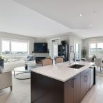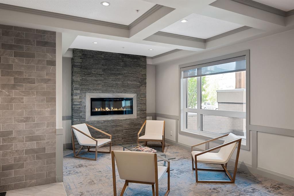 Welcome to this spectacular and spacious open concept corner unit in the Currie Barracks! This exceptional floor plan (one of the largest in the building) includes 2 bedrooms, an office/den, and 2 full bathrooms, along with incredible natural light throughout the unit. Extensive upgrades throughout with the Platinum Package; ceramic tile flooring in the entrance and bathrooms, quartz backsplash and countertops in the kitchen and bathrooms, upgraded shower heads, built-in cabinet in the bathroom, heated floors, central air conditioning, and high end finishes throughout. Upon entering the spacious foyer, you will be greeted with plenty of storage and closet space. The bedrooms are located on opposite sides of the kitchen/living area offering a great flow and layout to the unit! The large island is ideal for entertaining along with a gourmet chef’s kitchen with a hood fan and high end stainless steel appliances. A spacious dining area opens into the inviting living room with a corner fireplace. The primary retreat offers a beautiful view to the English Garden, custom built-ins by California Closets, a walk through closet into a stunning ensuite featuring a vanity area with quartz counter tops and a glass & ceramic tiled shower with upgraded shower heads. The second bedroom features an attached 4 piece bathroom with glass pocket doors and the bright office area completes this incredible home! An enclosed private SE facing patio off the living area is a perfect place to enjoy the sunshine. The unit includes a titled underground parking stall and a storage space. Also available for purchase is a sought after additional storage unit. Enjoy the perks of this maintenance free, very quiet, pet friendly, well maintained adult only building. The community of Currie continues to grow as the vision for the future development takes shape with exciting plans for high quality living and natural beautiful surroundings. With incredible restaurants & coffee shops, pubs, lounging areas, walking paths & parks, it’s no wonder that this community is a favorite! Definitely a must see home!
