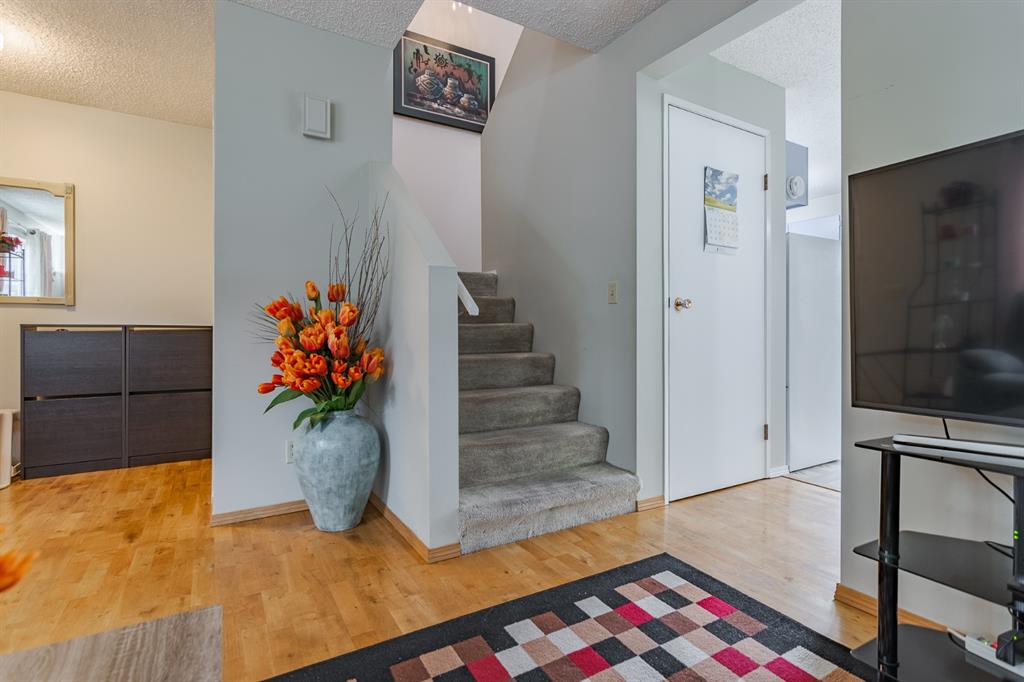 Very well kept half duplex with 1413sq. feet of TOTAL developed AREA in quiet cul-de-sac with LARGE south facing yard is READY for you to move in. You will appreciate the pride of ownership as soon you step in. Spacious living room just next to the kitchen with eating area overlooking large private back yard. ½ bath is good size and completes the main level. Upstairs are 3 bedrooms, all are great size and full bathroom. Basement is finished with family room and there is large storage area with laundry. Some recent UPDATES include Roof (2018), Siding (2018), Windows (2012). Great location close to playground, school, shopping, Fish Creek Park, Costco & easy access to Stoney Trail. Enjoy walks/bike ride on pathway just steps from your home.