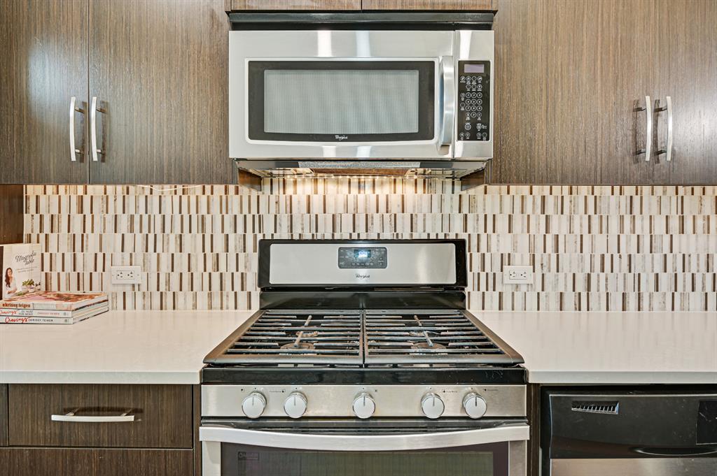 Where do we start? Enjoy sunrise with your favorite morning beverage on the patio overlooking a natural ravine. On a quiet street, with ample parking, and great views. The contemporary open design welcomes you! The living room offers a custom built-in bookcase/wine rack/entertainment centre and overlooks the natural green space. Past the dining area, step into a stylish, upgraded kitchen with quartz counters, undermount sink, contemporary backsplash, and upgraded stainless appliances including a gas stove. Enjoy dinner with the evening sun on the large back balcony (with inline gas). Enjoy yoga on the balcony in the fresh air.