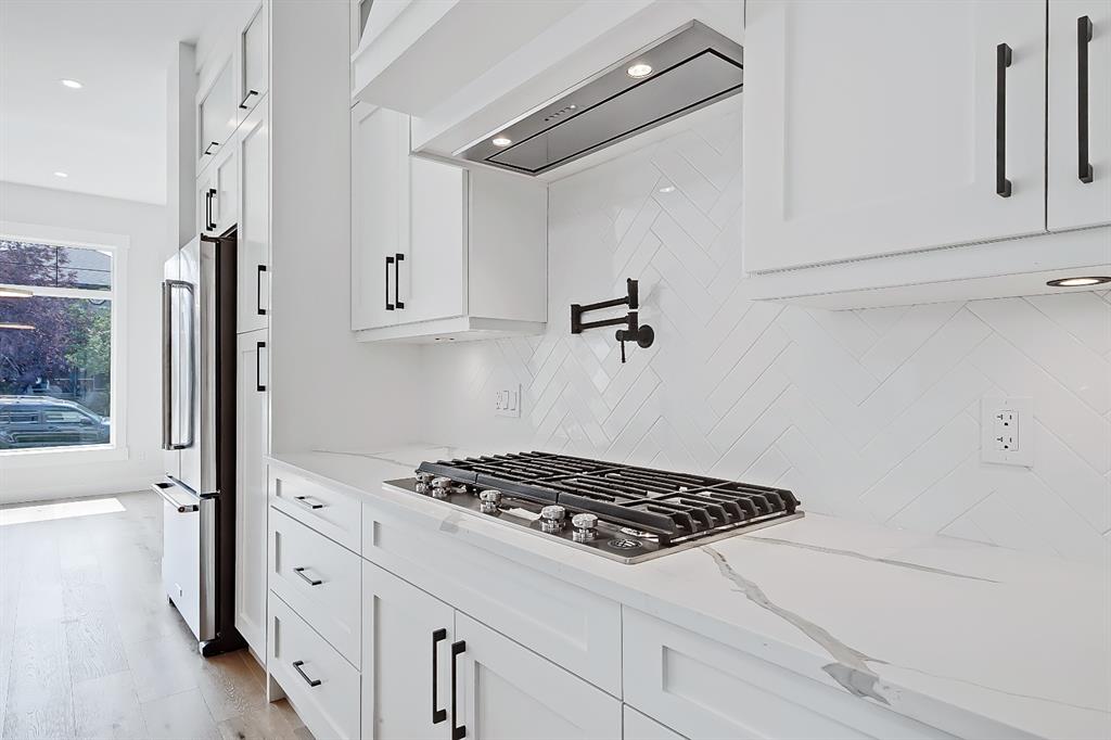 Are you ready to wake up each morning under sky-high ceilings while the morning sun begins to shine across your home? Where light shines down from the skylight in the bright bonus room into the main floor below and into the exquisite open concept kitchen that you’ve been dreaming of. This BRAND-NEW semi-detached infill by Ace Homes is coming Spring 2022 and offers high quality & upgraded finishes & nearly 2,600 sq ft of developed living space across 4 BEDROOMS, an UPPER BONUS ROOM, a separate HOME GYM, & a fully developed basement! The main floor features a chef-inspired kitchen w/ ceiling-height custom cabinetry, a modern tile backsplash, designer pendant lights, an oversized island w/ ample bar seating, & stainless steel appliances, including a gas cooktop and built-in wall oven. The spacious living room centres on a stunning gas fireplace feature wall w/ a full-height tile surround & a 10-ft bi-parting patio door, while the large dining room offers oversized windows overlooking the front yard. Adding to the convenience & luxury, a coffee bar/butler’s pantry is located just off the kitchen, w/ access to the mudroom w/ a built-in bench & lockers. Upstairs, the elegant master suite features soaring vaulted ceilings, oversized windows, & a walk-in closet w/ ample storage for both his & her needs! The spa-inspired ensuite is elegantly finished w/ quartz countertops, dual undermount sinks, a stand-alone soaker tub, & a stunning glass shower w/ a built-in bench, & steam rough-in. Two additional good-sized bedrooms open onto a large bonus room w/ a skylight & vaulted ceilings, perfect for an additional office or flex space for the family. Downstairs, the fully developed basement a spacious rec room w/ a wet bar. There’s also a 4th bedroom with easy access to the main 4pc bathroom with quartz countertops and a tub/shower combo. Tuxedo Park is a family-friendly INNER-CITY community perfect for both professionals & families. You’re within walking distance to Lina’s Italian Market, Rosso Coffee, & Peter’s Drive-In. Plus, multiple parks & schools are close by, it’s a QUICK COMMUTE to the downtown core, & you have easy access to 16th Ave. Best of all, located within walking distance of the future Green Line (LRT), this prime location will be even more favourable in coming years. This high-quality inner-city home is the one you’ve been searching for! **Featured photos are from a similar project by the same builder** *RMS are taken from builder’s plans & subject to change upon completion.