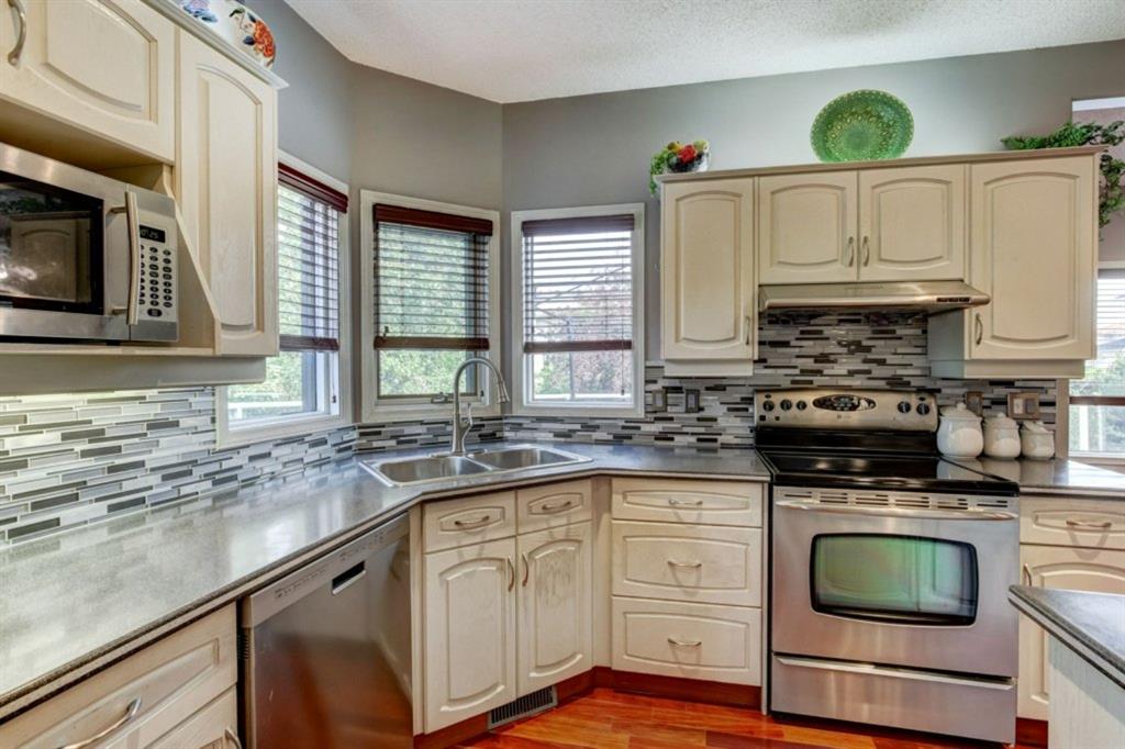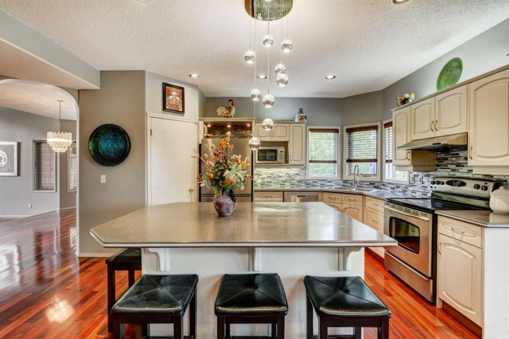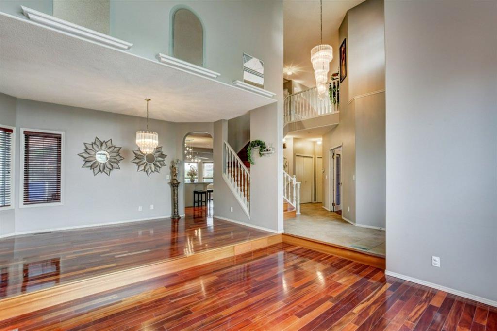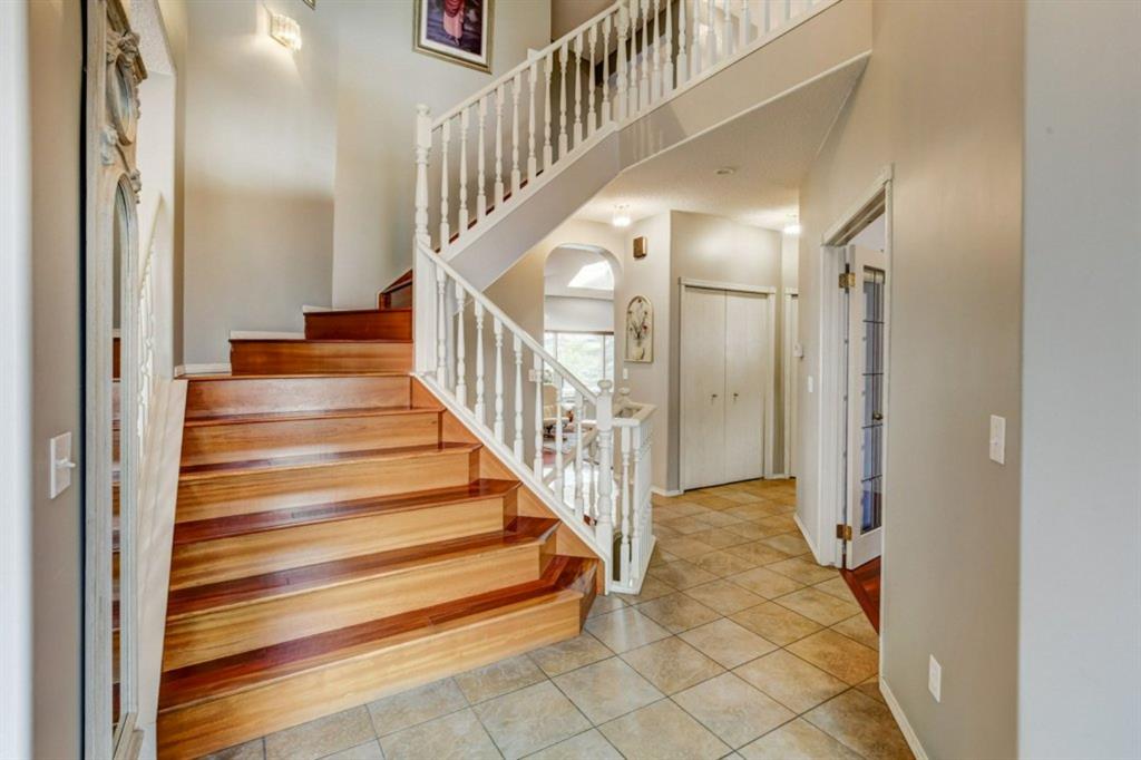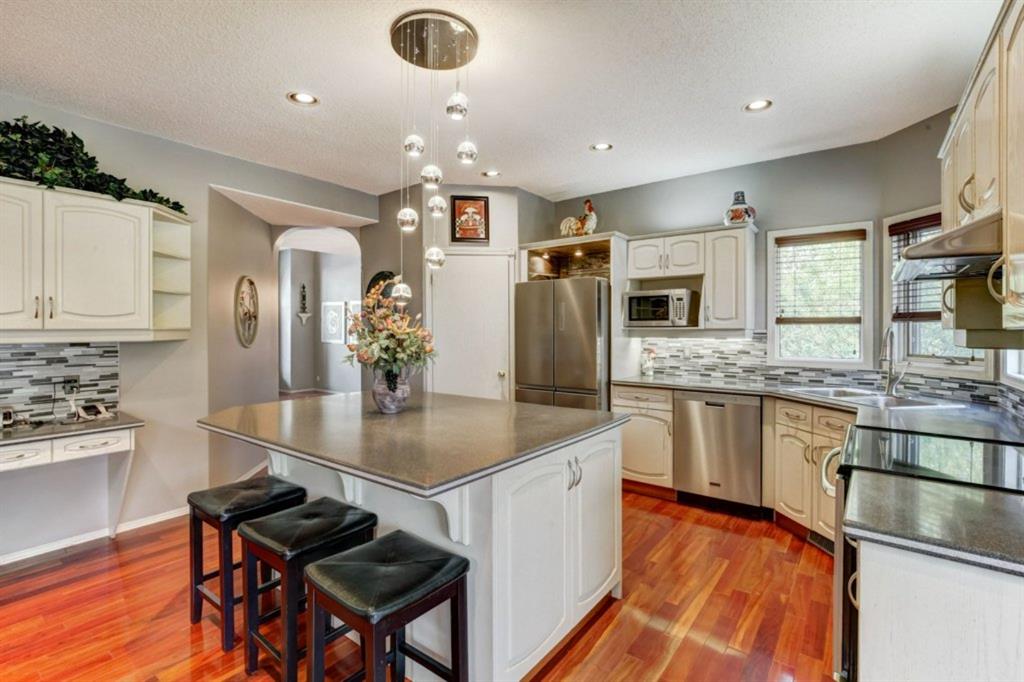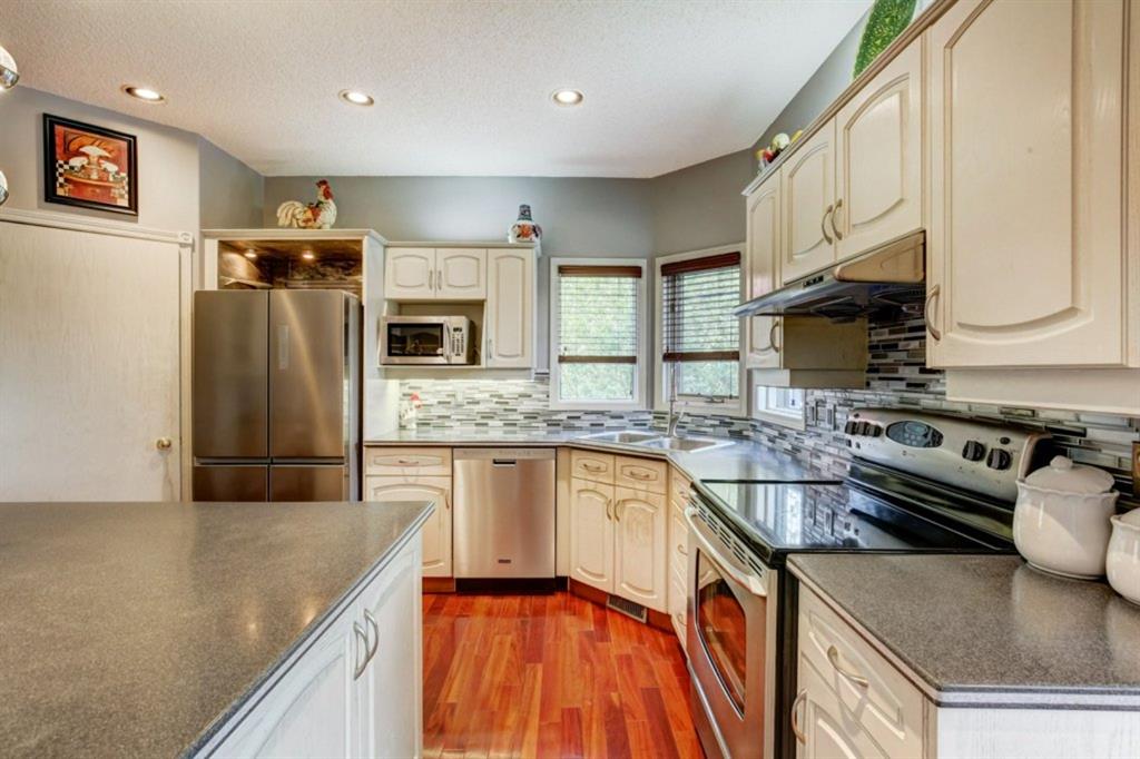 Are you ready to be completely wowed from start to finish? Your new home located in the community of Monterey Park awaits you. This affordable and attractive two storey home is fully finished and features a double garage located on a quiet cul-de-sac. With almost 4000 square feet of developed space this could be the home of your dreams! Open and bright main floor boasts 9′ ceilings, beautiful Brazilian Tigerwood hardwood flooring, and elegant light fixtures. As you enter you will notice the spacious and bright formal living and dining area. The kitchen is the heart of this home and features gorgeous cabinets, granite countertops, stainless steel appliances, stunning island, and a walkthrough pantry. Island eating and sunny dining area make this a wonderful space for entertaining friends or large family gatherings. The family room is gorgeous with built-in wall units, skylights and many windows looking out to the backyard. Open the patio door to access your spacious deck with glass railing. A fantastic outdoor space to unwind and enjoy the sun. Convenient main floor laundry and office space. Upstairs everyone will love hanging out in the sunny foyer with vaulted ceilings. Relax in your primary bedroom with spa like 5-piece ensuite and large walk-in closet with built-in storage. There are two additional generous bedrooms with built-ins and a 5-piece main bathroom. Developed walk-out basement with recreational space is ideal for watching movies or the big game. Option to have another room downstairs. Enjoy an indoor hot tub and a spacious bathroom with steam room. Additional features include built-in speakers throughout the house, French doors, gazebo on the balcony, huge storage room in the basement and a freshly painted interior. You will love spending time in this amazing backyard that backs onto greenspace. Watch the kids play on their swing set from the covered lower-level patio. Landscaped sunny yard with garden space and private access to public paths and green space. Great neighborhood close to many shops, schools and easy access to both Stoney & Deerfoot Trails. Don ‘t let this stunning home get away!