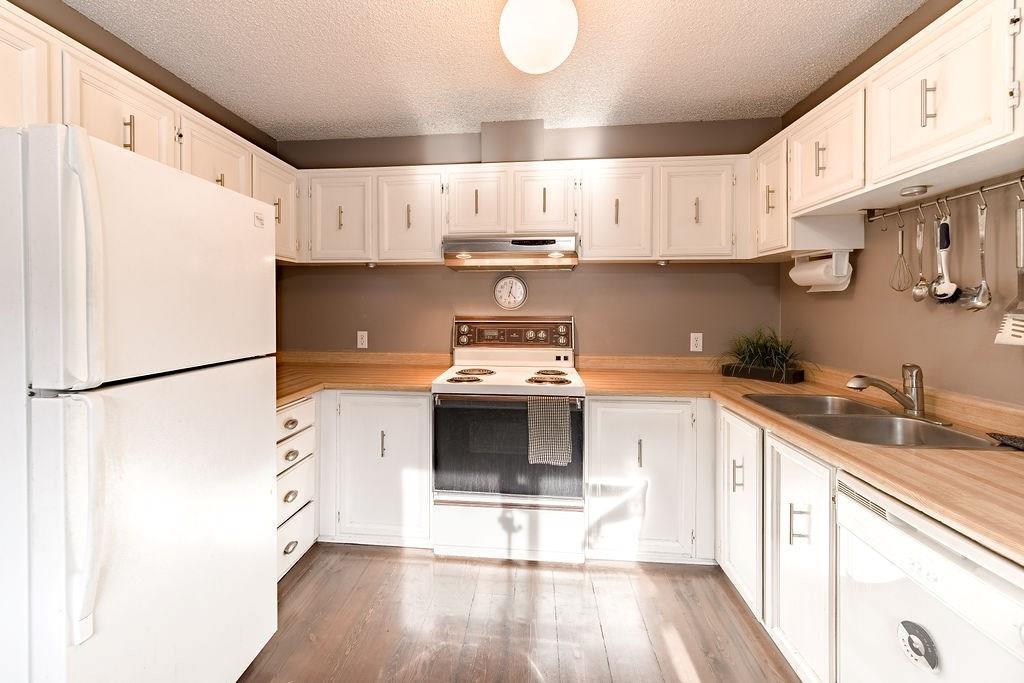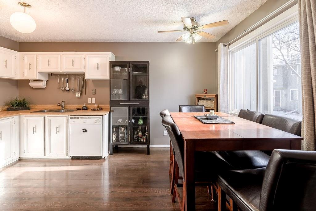 BACKING ON TO AN OFF-LEASH DOG PARK, this MOVE-IN READY, 3 bedroom/2 bath townhouse is waiting for its new OWNER! This unit has newer carpet on main level, upper level and stairways, newer linoleum in both bathrooms, and natural pine wood floors in kitchen and hallway. Main floor has an open kitchen with plenty of cabinets, NEW COUNTERTOPS, new stainless steel stove and dishwasher. Wood-burning fireplace in the living room will keep you cozy all winter long. The 2nd floor has a master bedroom with walk-in closet. Two additional bedrooms and a 4 piece bath complete the upper level. Basement is fully developed w/huge family room, games/rec room, laundry room & 3 piece bath. Extra insulation in attic to keep you warm in the winter and cooler in the summer. Unit also has newer vinyl windows, front door, screen door and patio doors. Roof and eaves were replaced in 2008 and the exterior painted in 2016. PARKING STALL IS STEPS FROM FRONT DOOR. Backyard is fully fenced. This is a great property for an INVESTOR or FIRST-TIME HOME BUYER/YOUNG FAMILY.