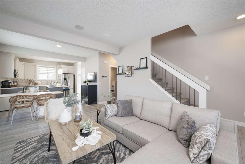 This BEAUTIFUL BRAND NEW BUILD flawlessly creates a LAVISH, HIGH-STYLE DESIGN while maintaining an INVITING AND COMFORTABLE AMBIENCE. Located in the NEW MASTER PLANNED COMMUNITY OF PINE CREEK surrounded by the SCENIC SOUTHERN ALBERTA FOOTHILLS. Great curb appeal with BUILDER COMPLETED FRONT LANDSCAPING and front VERANDA welcomes you home! NATURAL LIGHT illuminates the STYLISH INTERIOR, modernly decorated in NEUTRAL HUES uniting the OPEN CONCEPT FLOOR PLAN. 9’ CEILINGS, TRIPLE PANE WINDOWS and durable LUXURY PLANK FLOORING are the first of many upgrades in this outstanding home. The living room invites relaxation in front of the WARM FIREPLACE while CLEAR SIGHTLINES enable unobstructed interactions, ideal for entertaining. Convene over a delicious meal in the dining room that centres the main floor. Culinary adventures await in the STUNNING, CHEF’S KITCHEN FEATURING a PLETHORA OF 2 TONED CABINETS, A LARGE BREAKFAST BAR ISLAND, STONE COUNTERTOPS, SILGRANITE UNDERMOUNT SINK, SOFT CLOSE DOORS AND DRAWERS AND A GENEROUS APPLIANCE ALLOWANCE. A handy mudroom leads to the backyard with 22’x22′ CONCRETE PAD for off-street parking and plenty of room for a future garage. Laundry is conveniently located on the upper level along with a great TECH SPACE for homework and catching up on emails. All 3 bedrooms are spacious and bright including the MASTER OASIS complete with a WALK-IN CLOSET and PRIVATE AND LUXURIOUS ENSUITE. The basement is ready for your dream development with room for everything on your wish list. This exceptional home is in a PRIME LOCATION within a unique community boasting over 50% of the land designated as an ENVIRONMENTAL RESERVE. This is a rare opportunity to enjoy the picturesque country within the city, just 10 MINUTES TO SOUTH HEALTH CAMPUS, SPRUCE MEADOWS, FISH CREEK PARK AND THE EXTENSIVE AMENITIES IN SHAWNESSY.