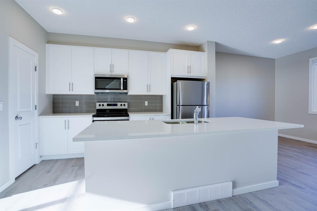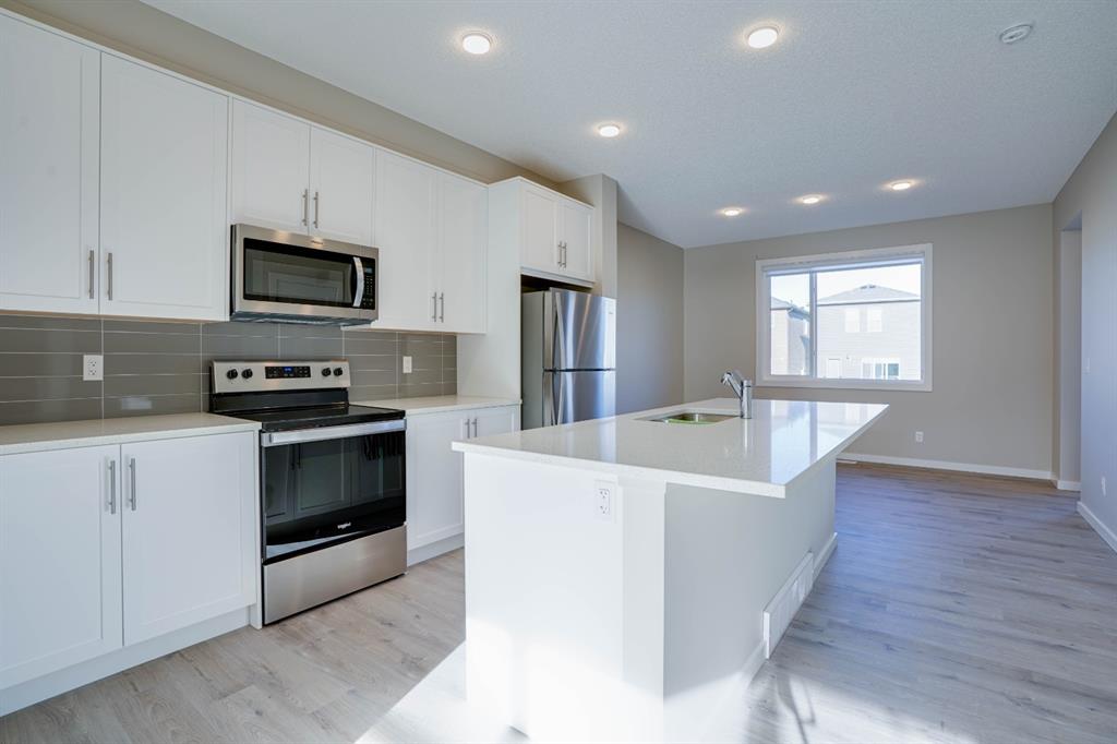BRAND NEW HOME WITH NEW HOME WARRANTY FROM BUILDER. The very Popular ALEXANDER in a most desirable community of savanna . Great exterior features EXTERIOR SIDE ENTRANCE . The spacious eating area overlooks the rear yard . The upper floor features the MASTER SUITE and a large walk in closet. with window and a ENSUITE washroom . Two Additional Bedrooms, the main Bath and the laundry complete the upper floor. More features include 9′ Main floor, Stainless Steel Kitchen appliances, Stacking Washer and Dryer, Quartz Countertop, pot drawers, taller upper cabinets, and rough in plumbing in the basement. And brand new premium blinds . QUICK POSSESSION.