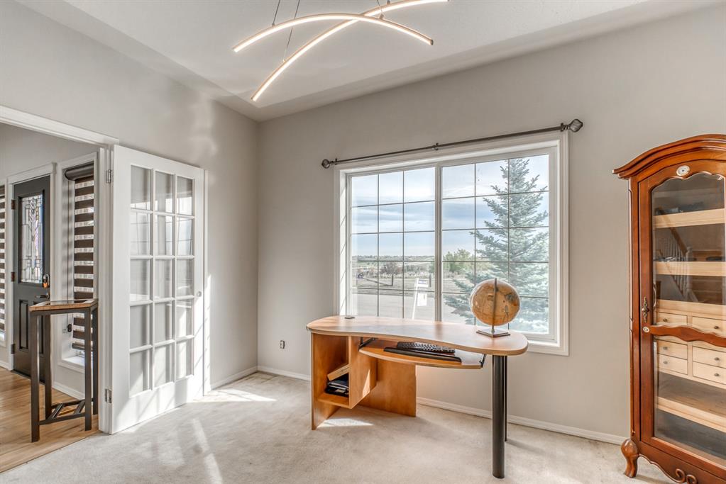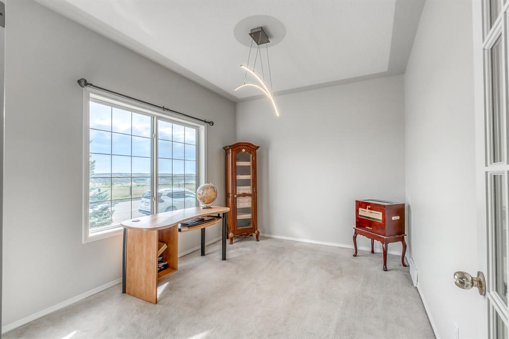 Perched on top of the ridge, this beautiful two story house boasts unobstructed views of the Bow River Valley, Blue Devil Golf Course and bike paths. The double-decker front porch with master balcony assures you will take advantage of the impressive views. Main floor features a large living room with gas fireplace, convenient front facing office, upgraded kitchen with stainless steel appliances, big breakfast nook with access to the spacious backyard deck. The upper level has a large owners retreat with 4 piece ensuite, walk in closet and private balcony overlooking the valley from the upper level.