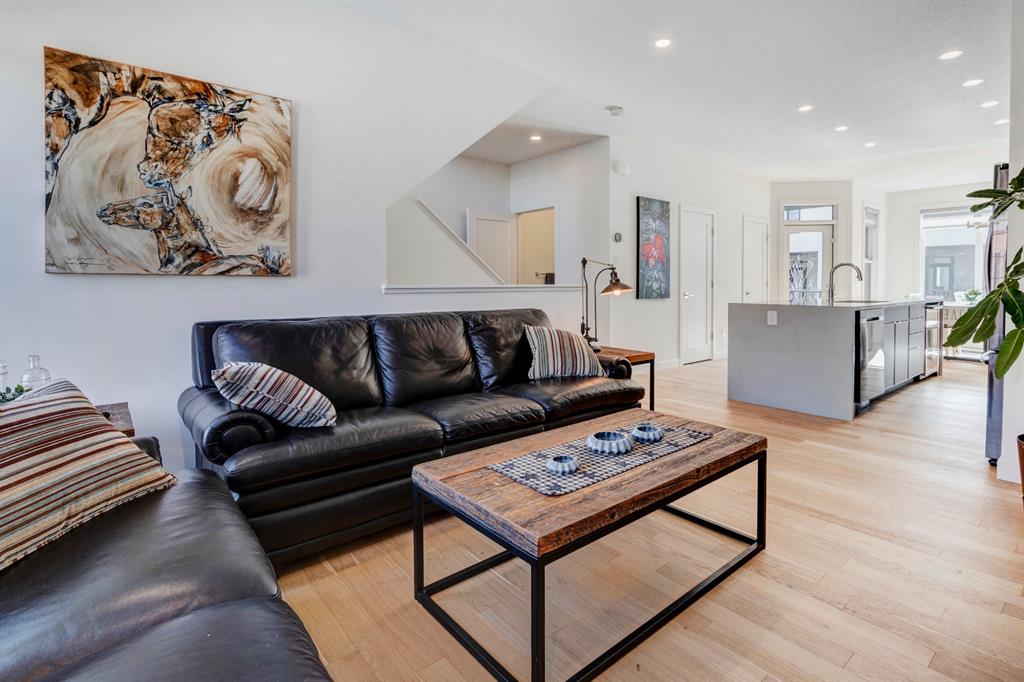 OPEN HOUSE SATURDAY DECEMBER 4TH, 2-4PM! HOME SWEET HOME! AMAZING VALUE! Welcome to this spectacular, New York style Brownstone Townhome, custom-built in 2020 by Madison Ave Group, that is situated in the new and exciting community of Greenwich in sought-after Greenwood. This luxurious “PERRY MODEL” home has only been lightly lived in for a few months and SHOWS BRAND NEW! You will be blown away with the lavish interiors designed by Haus of Bryant Interior Design. This dreamy home offers an open concept floor plan with 3 bedrooms (2 master retreats), two 4 piece ensuites, two 2 piece bathrooms and 1,637 contemporary SQFT of living space. Highlight features include a gourmet chef’s kitchen with gleaming quartz countertops with a waterfall edge, upgraded chimney style hood-fan, premium, high efficiency stainless steel appliance package with a built-in oven, gas cooktop, & built-in microwave, beautiful kitchen cabinetry with soft close doors, full height backsplash, spacious kitchen island with a breakfast bar and a convenient walk-in pantry. Additional upgrades include AIR CONDITIONING, blinds/window coverings, built-ins, 9 feet high main level ceilings, gorgeous engineered hardwood floors, massive triple-paned windows throughout soaking the home in natural sunlight and a high efficiency furnace. The private south facing deck is perfect for entertaining and basking in the breathtaking views. There is also a DOUBLE ATTACHED GARAGE for all of your parking needs. This UNRIVALED LOCATION is steps from the future Calgary Farmers Market and close to Canada Olympic Park/Winsport, Bowness Park, Calgary Climbing Centre, Crowfoot Centre, Market Mall, other boutique shopping, restaurants, public transportation, off leash dog parks, easy access to the mountains/Canmore/Banff and a quick drive to Downtown Calgary. Greenwich offers the maintenance free, luxury lifestyle you have been searching for. Save money with NO GST, No 2% Builder Resale Levy and over $30,000 in upgrades including custom blinds and air conditioning. Book your private viewing today!