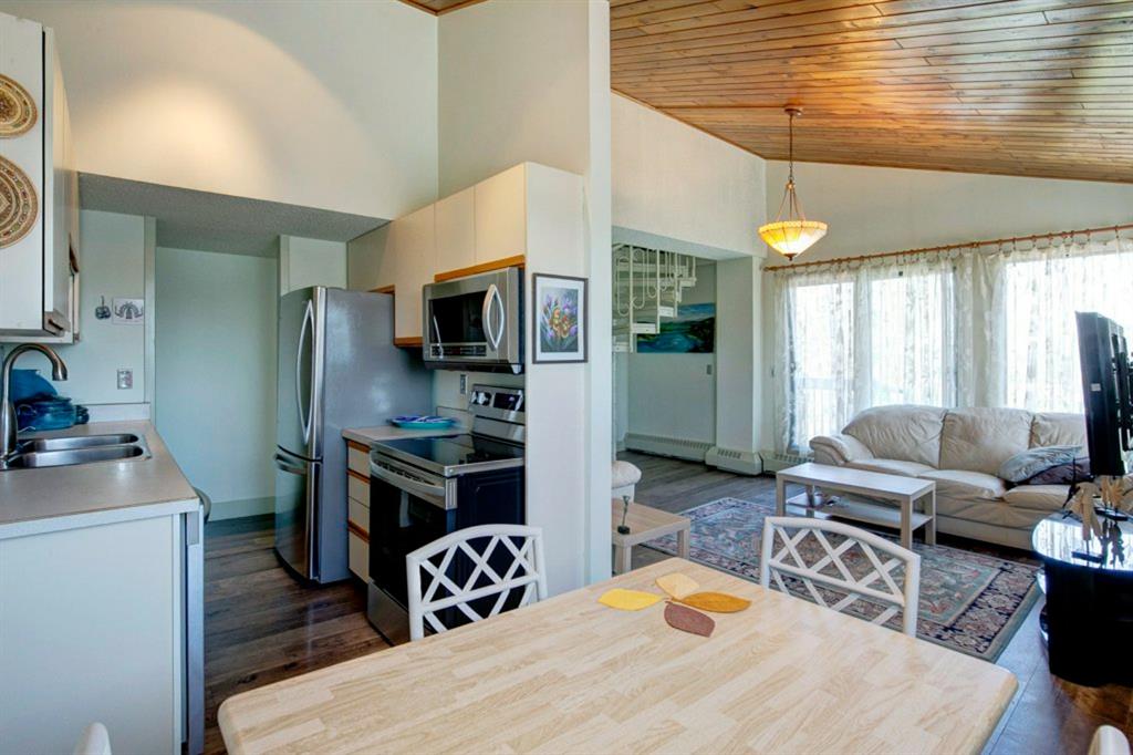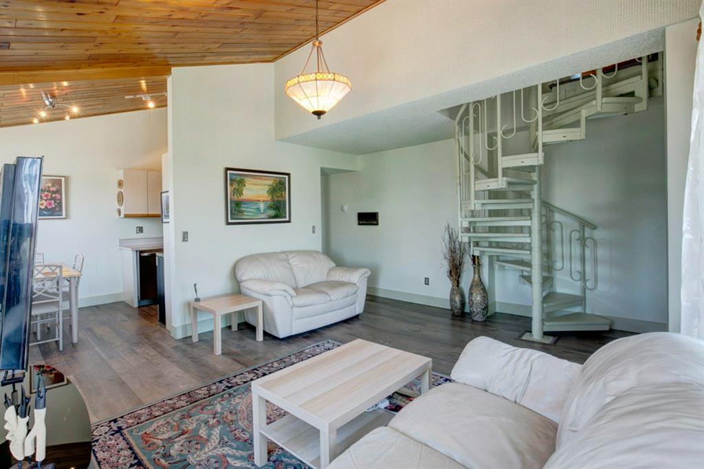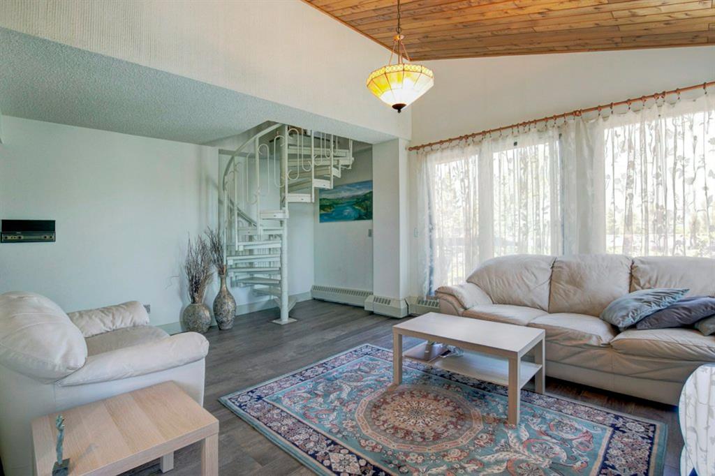 Beautiful loft style 2-storey unit with 2 balconies and unobstructed city views in show home condition. Located in Knob Hill and the Richmond area. Very bright and open plan with lots of windows. Recently updated throughout. Concrete building, newer flooring throughout, recently painted throughout. Updated kitchen with stainless steel appliances open to a large dining and living room. Patio doors leading out from the living room with city views. Renovated 4pc bathroom with Kohler fixtures and Italian tile. 2 bedrooms with vaulted ceilings in the master bedroom. In-suite laundry closet. Gorgeous, unique, spiral staircase leading upstairs to a huge loft with vaulted ceilings, stone packed fireplace and a huge family/flex room. Patio doors leading out to the balcony with city views. 2 underground heated parking stalls. Pride of ownership shown throughout. Even catch the Fireworks during the Calgary Stampede. Quiet location. Must see to appreciate the beautiful, friendly, environmental evergreen trees for privacy and relaxation. Ideal for the first time buyer, professional or couple. Close to amenities, schools, transportation and minutes to downtown. Exceptional value!!!