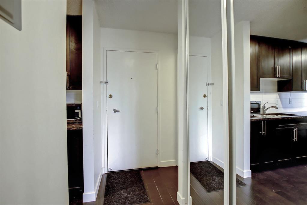 LOCATION! Welcome to this fully upgraded condo in a convenient central location! This unit is finished with GRANITE counter tops, Laminate Flooring, Black Appliances, Microwave Hood Fan and Maple Cabinets. This unit has a very spacious Bedroom, very decent size Living room and in-suite storage. The balcony offers privacy overlooking HUGE GREEN SPACE. The condominium is minutes away from downtown, airport, shopping, city transit, and all major routes. The building is very clean and maintained pretty well.