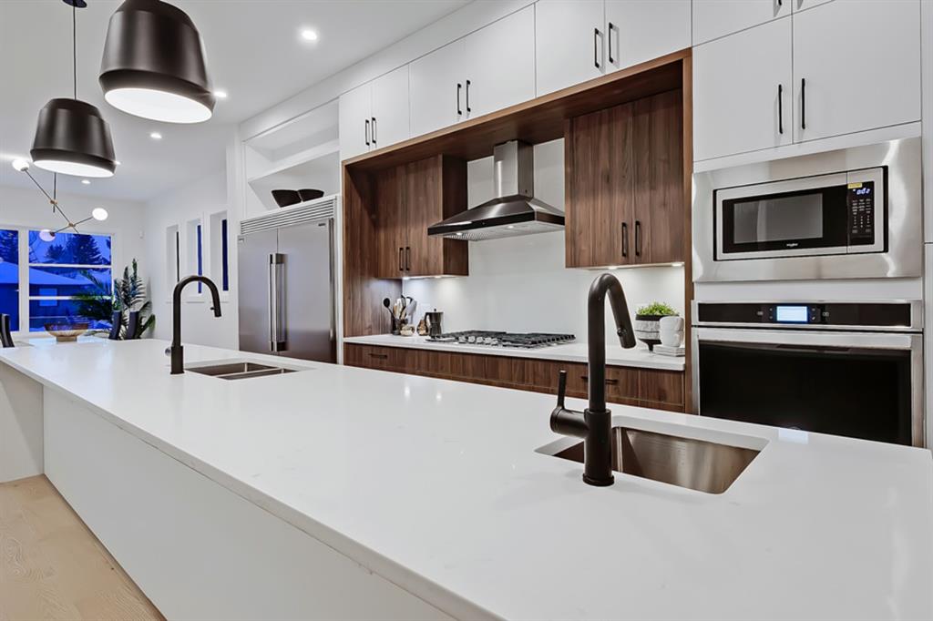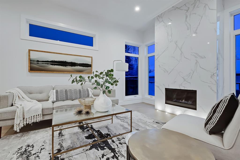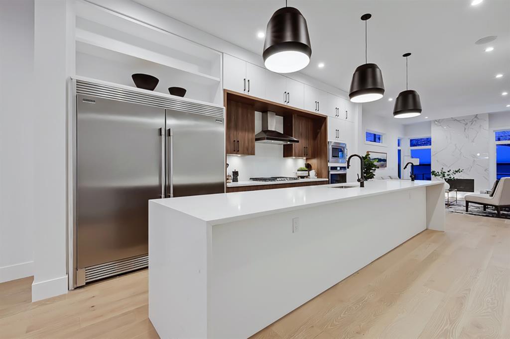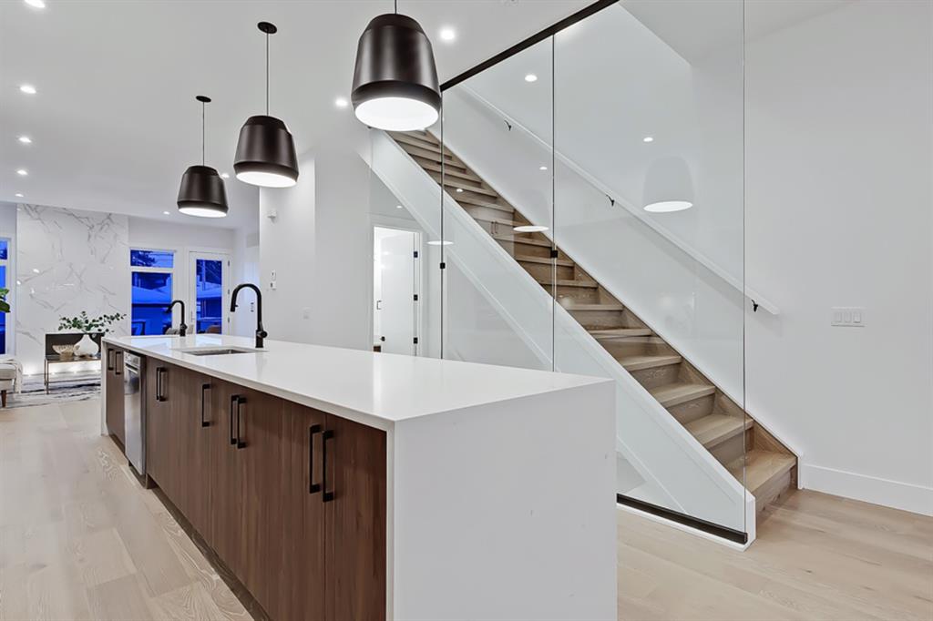 *Visit Multimedia Link for Floorplans & More!* Prepare to be wowed! This brand-new DETACHED infill in Shaganappi is sure to generate attention w/ a WALK-OUT LOWER PATIO w/ rough-in for a future hot tub and an UPPER DECK w/ DOWNTOWN VIEWS! This home is perfect for those looking for a functional open-concept floorplan. Enjoy spacious primary living spaces across 2,918 sq ft, 4 beds, 3.5 bathrooms, and a fully developed basement w/ lower mudroom and walk-out access to the detached double garage. The gourmet kitchen boasts extensive ceiling height cabinetry, stainless steel appliances, and a massive island featuring waterfall quartz countertops and bar seating. The living room centres on a modern gas fireplace with a fully tiled feature wall and oversized windows on both sides overlooking the deck area w/ expansive downtown views. Highlighted by a floor-to-ceiling glass feature wall, a beautiful wood-wrapped staircase leads to the second level, which hosts three good-sized bedrooms, two full bathrooms, and a laundry room. The stunning master retreat displays an elegant gas fireplace and a private ensuite with barn door entrance. Downstairs, the basement is perfect for entertaining, with a vast rec room equipped w/ a built-in media wall, 3D colour projector, 120″ screen, a fully-loaded wet bar with an island and bar seating, wine room, and walk-out patio w/ a rough-in for a future hot tub! Shaganappi is a popular inner-city community home to upscale infills within walking distance to the Westbrook CTrain station, Westbrook Mall, and the Killarney Aquatic Centre. Along with in-slab heat and rough-ins for a central vac and security systems, this is the one you’ve been waiting for. Note: Pictures are from a similar, previous project by the builder. **RMS measurements derived from builder’s plans & subject to change upon completion**