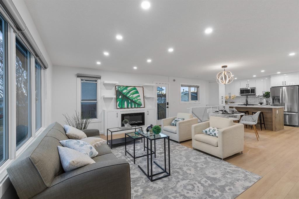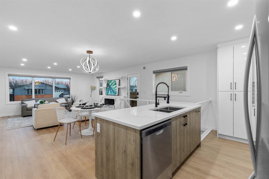 FULLY RENOVATED> Welcome Home, fully renovated from studs in the community of ACADIA. This is a real upgraded renovation. Shows excellent craftsmanship and unique feature throughout 4 bedrooms, 3 full washrooms (custom designed) with single garage attached and single garage detached is ready to be your dream house and only a few minutes to Macleod Trail, close to shopping centre and lot of business on walk in distance. Big living room with electric fireplace on a custom feature wall adjacent to dreamy gourmet two tone kitchen with all brand-new stainless steel appliances (electric range, refrigerator, microwave hood fan, dishwasher). Master bedroom with custom walk-in-closet leads to the ensuite with custom shower. Basement is fully developed with high end bar area, two bedrooms, 4 piece washroom and spacious laundry room. Step outside to your sunny big backyard newly landscaped with single garage detached . New ( framing, insulation, drywall, flooring, knock down ceiling, electrical, plumbing, finishing, lacker paint, washable matt paint, kitchen cabinets, quartz counter top, faucets, custom titles, basement developed with wet bar, soft facia, gutter, custom cedar siding, lux panels, new fence, new landscape). This is must see, call the best realtors in city today.