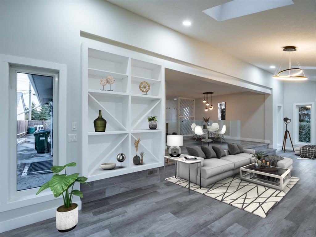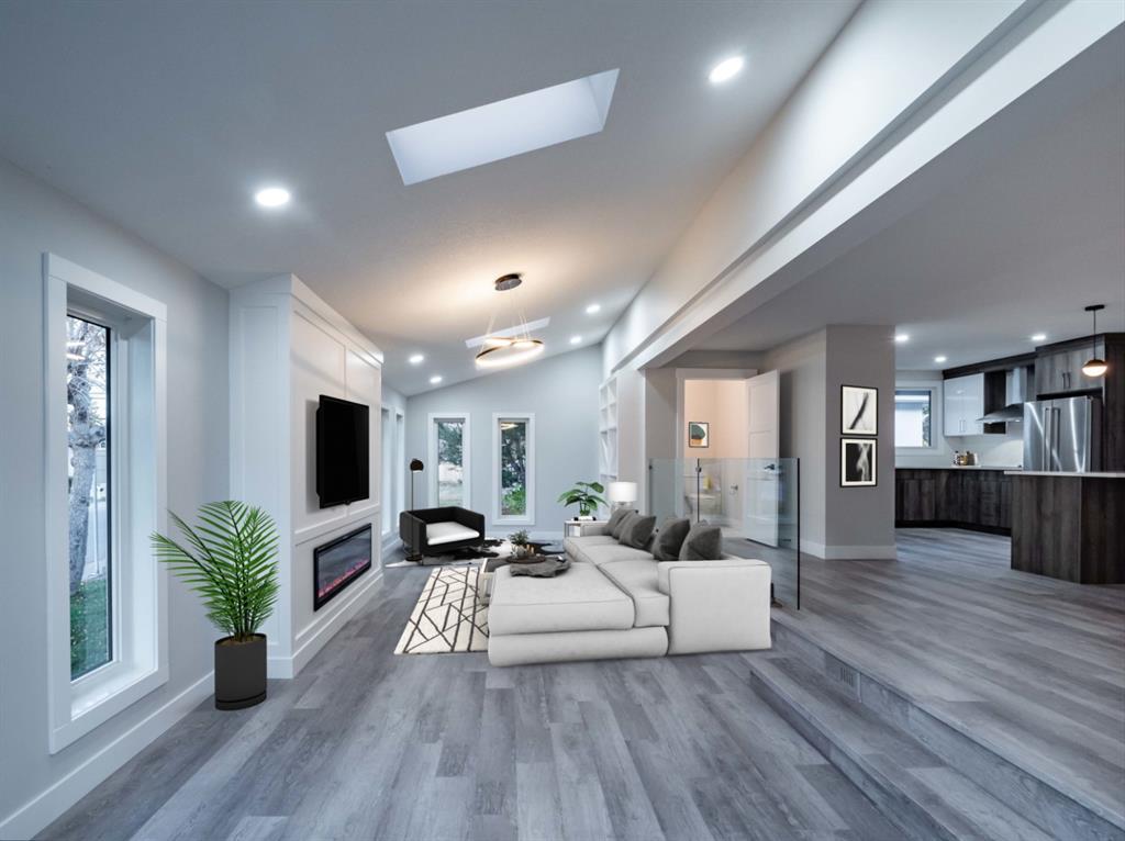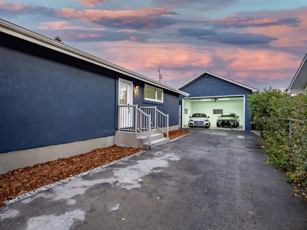 Welcome home to this beautifully crafted home in the heart of the highly sought-after community of Westgate. The stunning bungalow has been fully updated with a modern flair and includes a brand-new kitchen with stainless steel KitchenAid appliances, a lower-level bar and two and a half updated bathrooms – all offering gorgeous quartz countertops through out. New exterior stucco has been installed along with vinyl plank flooring, fresh and modern paint through out, new vinyl windows, a new garage door, gutters, and upgraded electrical and plumbing. From the moment you enter you have a sense of home, the spacious kitchen with a massive island and ample storage space flows into the dining and living areas showcasing an exquisite electric fireplace, vaulted ceilings, and huge skylights, boasting a bright and open concept layout that is perfect for entertaining. With three bedrooms above ground and one below, you will have more than enough space for your family and can get cozy with your loved ones for an at home movie night in your very own lower-level media room, outfitted with another newly installed fireplace, a full wet bar, and a wine fridge. With the oversized double detached garage and an extended driveway, there is no shortage of parking spaces. The abundant square footage could be configured for the downsizing couple looking for single level living or the young family in search of a connected community to raise their family in. Either way, the location is perfect being only a 3-minute walk to the West LRT, having schools, shopping, and parks nearby plus it’s only a 10-minute drive to downtown! This home is a modern masterpiece that will not disappoint – book your showing today and experience relaxed living in Westgate.