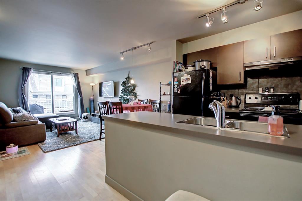 FANTASTIC LOCATION! Beautifully renovated top floor PET FRIENDLY condo just off of 17th Ave SW. Features hard wood flooring, tiled backsplash in the kitchen, tiled flooring in the bathroom and tile-wrapped soaker bathtub / shower. Well maintained and managed building with new roof and balconies as of 2020. This stylish unit features a modern interior with upgraded doors, large windows, appliances, kitchen cabinets, and fixtures. Appliances include refrigerator, oven, stove, dishwasher, and in-suite laundry with a washer and dryer. A titled parking stall is included. A Sunny west facing top floor balcony provides plenty of natural lighting for the unit and a nice place to sit and relax. Open concept layout with kitchen island. New modern halogen light fixtures in kitchen and dining area. Inner city living at it’s best; stroll to 17th Ave SW shops, restaurants, pubs, cafes, as well as Marda Loop and the downtown core. Close to all amenities, on a major bus route, and easy to get to any part of the city. Close to parks with pleasant scenery. This unit is perfect for first time or established buyers, investors, or anyone looking to enjoy the best of inner-city living! Call to book your private viewing today!