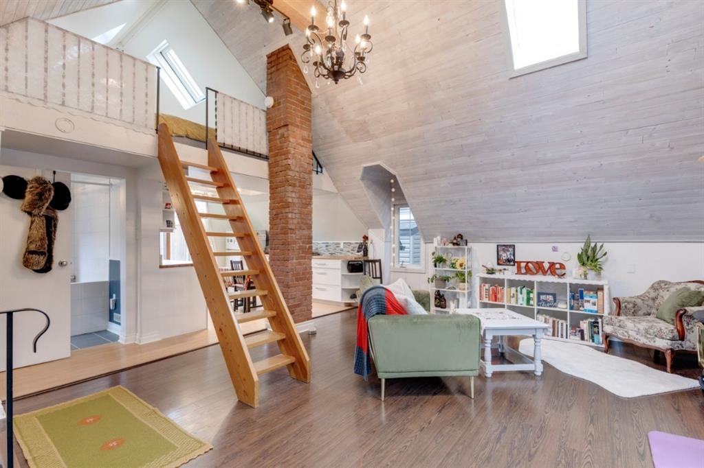 A unique upper living unit fully renovated boasts a large modern kitchen leading to a private deck. The living room opens with a vaulted ceiling and accent beams, 2 skylights, and large bay window. A loft bedroom with 2 Velux Fresh Air Skylights makes sleeping under the stars a breeze. The contemporary bathroom equipped with a rain shower and soaker tub provides a restoring space. The 2nd living unit is greeted by a west facing sunroom and a general layout fit for a working professional. The 3rd living unit with newer vinyl plank flooring is like having a work office nearby! The single detached garage can be used for storage. Mid efficiency furnace, laundry facility, separate storage lockers available in the basement. Located on a desirable tree lined street steps away from OEB, Una Pizza, Made by Marcus, Leela Spa, and walking distance to Downtown, Bow River, and Memorial Drive, this property attracts professionals alike. Charming, well-maintained, turn key property.