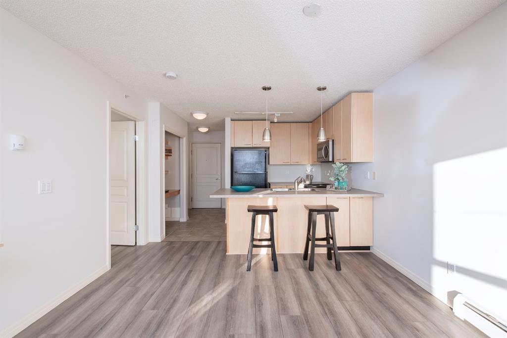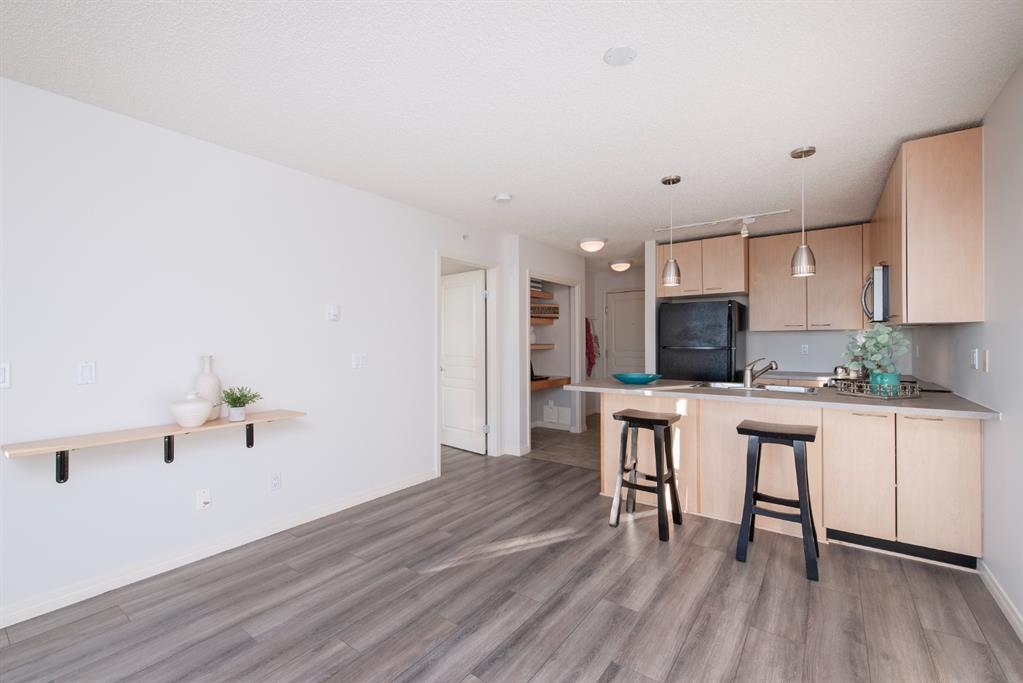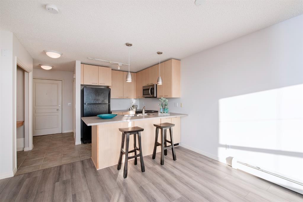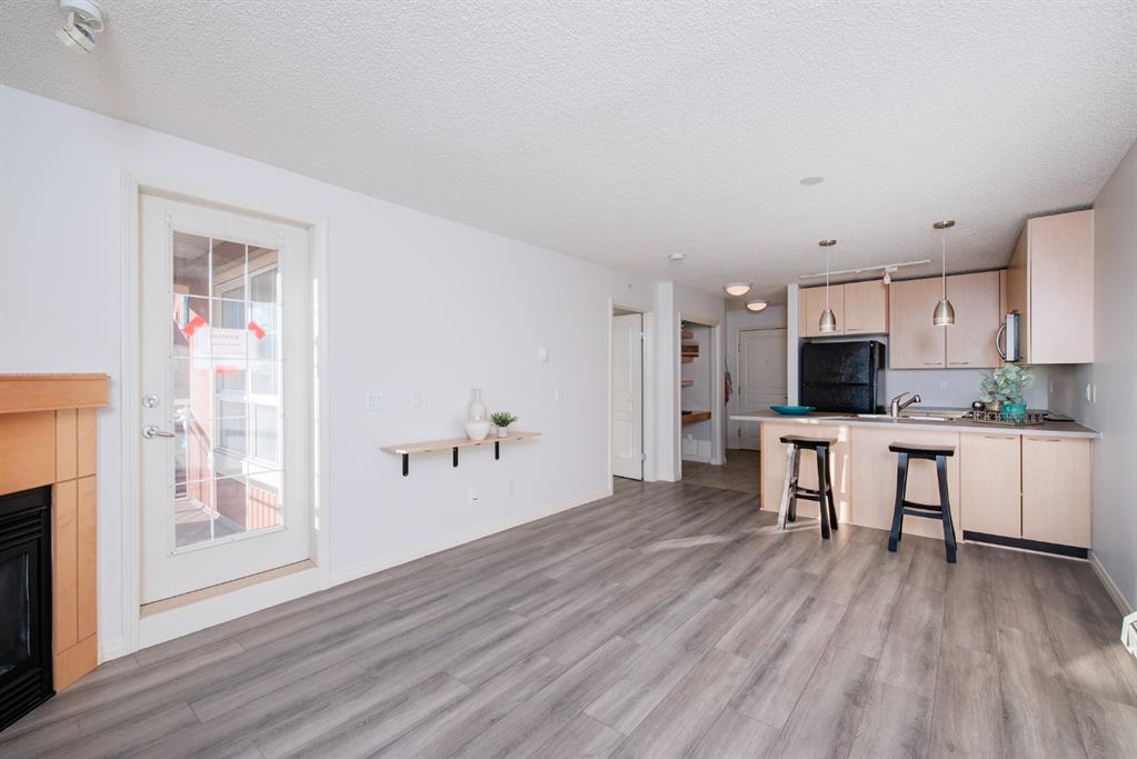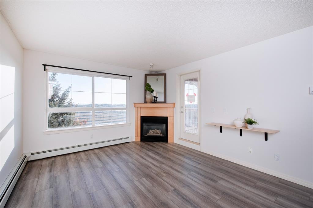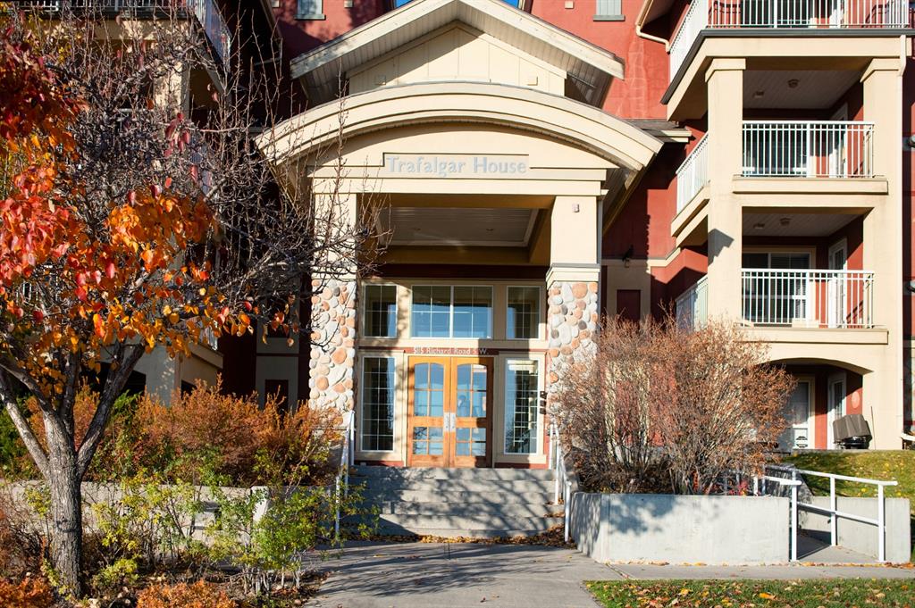 You will bask in the natural sunlight coming from the loads of west facing windows with VIEWS OF DOWNTOWN from your TOP FLOOR UNIT. Located in the popular Trafalgar House, this PET FRIENDLY 1 bedroom 1 bathroom condo has been freshly painted and new floors installed; ready for you to move in and enjoy! Great floorplan: kitchen featuring lots of counter space, cupboards and an eat up island and overlooks the living space with a cozy corner gas fireplace. The large bedroom boasts not one but two large closets both with plenty of room for storage. You’ll love the massive sunny SW-facing balcony with gas hook up ample space to entertain. Completing the package is a convenient in-suite laundry, titled underground parking and a storage locker. Building amenities include a fitness room, party room, bike storage & car wash bay. Fabulous location just steps from Mount Royal University, transit, shops & restaurants!