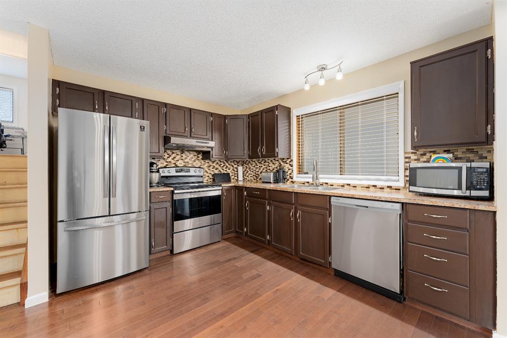 This well-maintained 6 BEDROOM home has seen a MULTITUDE OF UPGRADES with ENERGY EFFICIENCY in mind and is perched on a QUIET CUL-DE-SAC within WALKING DISTANCE TO SCHOOLS. FRESHLY PAINTED, this quiet sanctuary offers a ton of space for your family to grow, mature and change with the times. Immediately be impressed upon entry by the gleaming HARDWOOD FLOORS and WALL OF WINDOWS streaming in endless sunshine. Promoting relaxation is the inviting living room with mature trees, cul-de-sac views and lots of space for unwinding. The adjacent dining room with new ELEGANT LIGHT FIXTURE and tons of sunshine provides a sophisticated entertaining space with clear sightlines into both the living room and kitchen. Inspiring culinary adventures is the large kitchen featuring NEW STAINLESS STEEL APPLIANCES, a ton of cabinet and counterspace. The upper level is home to 3 spacious and bright bedrooms including the master retreat boasting a new STYLISH LIGHT FIXTURE, A PRIVATE AND UPDATED 3-PIECE ENSUITE and an EXPANSIVE WALK-IN CLOSET. Gather in the LOWER LEVEL FAMILY ROOM for engaging conversations, movies and games in front of the warm FIREPLACE. This level conveniently has a SEPARATE ENTRANCE to the backyard as well as a 4th bedroom and full bathroom. Even more space awaits in the basement with 2 additional bedrooms and a huge laundry room with a handy sink and loads of built-in storage plus extra storage area in the crawl space. Situated on an OVERSIZED PIE-SHAPED LOT, the MASSIVE BACKYARD offers several ways to enjoy an easy indoor/outdoor lifestyle – unwind on the OVERSIZED GROUND LEVEL DECK or roast smores on the gravel patio. An abundance of grassy areas is great for kids and pets and is PRIVATELY FENCED and nestled behind the DOUBLE DETACHED INSULANTED GARAGE with NO BACK NEIGHBOURS. This exceptional home has many ADDITIONAL UPGRADES INCLUDING A HIGH-EFFICIENCY FURNACE, NEWER HOT WATER TANK, RECENTLY CLEANED DUCTS, NEW LIGHTING THROUGHOUT, NEW BASEBOARDS AND CASINGS, NEW WINDOW COVERINGS, NEW DRYER, DISHWASHER, STOVE AND FRIDGE, NEW BATHROOM VANITY AND ALL NEW TOILETS. All this and an outstanding location that is within walking distance to Father Scollen School and a quick drive to Annie Foot School. Also within the active community of Temple is a great community centre, sports courts, ice rink, exercise park and extensive regional bike paths, close by is the always popular Village Square Leisure Centre, the airport and all major thoroughfares.