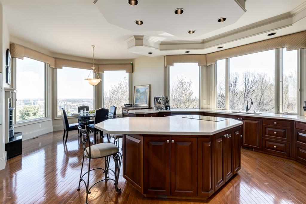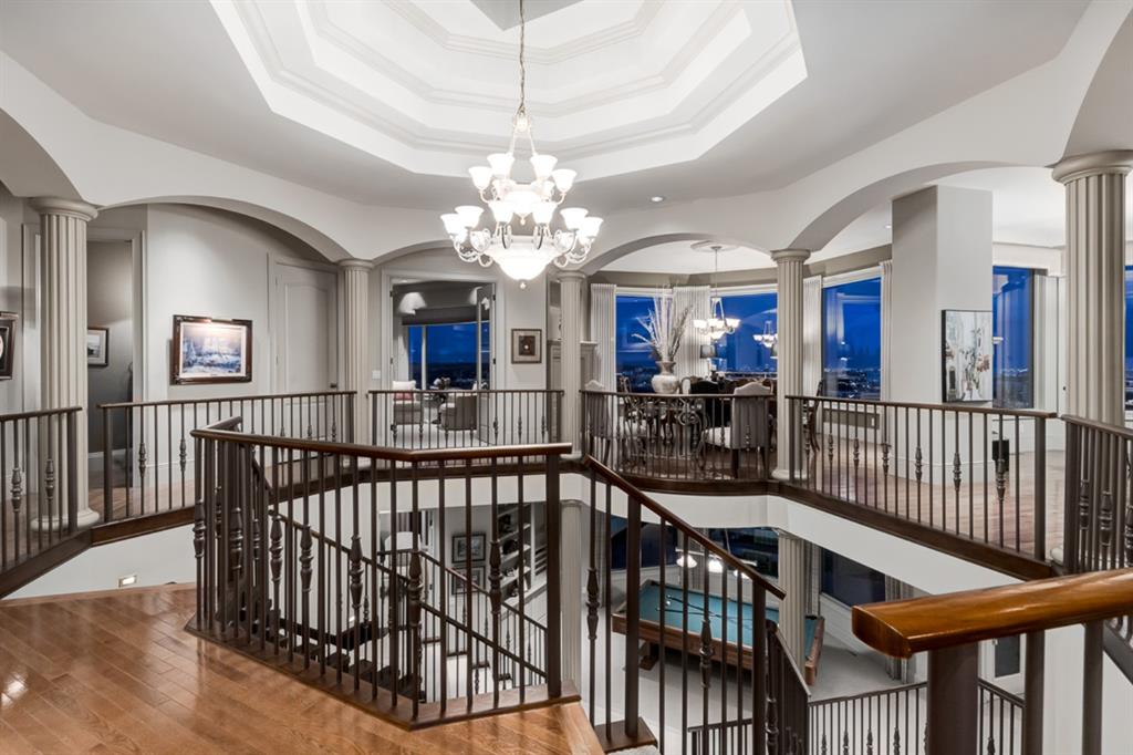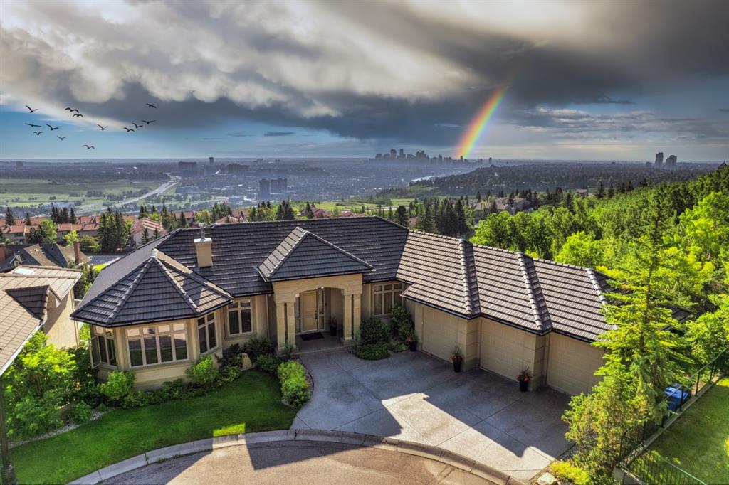 ***OPEN HOUSE – Saturday 20th November @ 2 PM-4 PM*** A property like none other, this spectacular 3-level hillside custom home with over 7000 sq ft of finished living space, has 2 walkout levels and includes Guest Quarters! Perfectly positioned, well thought out with no compromise on quality and craftsmanship. No expense has been spared with meticulous design elements and building materials used. Perched in Calgary’s Upper Westside with unobstructed, panoramic views of Downtown Calgary and the Bow River Valley. Situated at the end of a quiet no-through street, this property sides onto an environmental reserve so your views remain protected. From the moment you enter the grand foyer, be awestruck with breathtaking views of downtown that are framed perfectly with beautiful windows. This home is built for the entertainer in mind, with an open floor plan that facilitates fluid movement and inclusion in a multitude of spaces. The family Chef will appreciate the open concept kitchen with a subzero fridge, induction cooktop, large walk-in pantry, and plumbed-in for the perfect barista machine. Make use of the ample custom cabinetry and counter space. Enjoy an intimate dining experience in the formal dining room, or gatherings in the living room overlooking downtown Calgary. The main floor executive office is built to capture views while maximizing function and productivity. Also on the main is the primary suite. A barrel-arched hallway leads you to the primary bedroom, complete with 2 dressing rooms, and a spa-like 5 pc. ensuite. Given the topography of this spectacular hillside property, there are 2 lower floors, each with 10′ ceilings. The middle floor features a piano room which allows for music to reverberate throughout the home. Enjoy gathering with family and friends in the games room, lower living room, or enjoy a beverage in the custom-built booth. Additionally on this floor are bedrooms 2 & 3 each and a media room for the film enthusiast. The Second lower level is home to another guest room, as well as a custom-built Golf Simulator space with room to gather while playing Pebble Beach. Also on this floor is an exterior entrance allowing for easy access to the Guest Quarter with a full second kitchen, bedroom, laundry & more. Truly a turn-key property with virtually no maintenance, including acrylic stucco, concrete decks, in-floor heat, lifebreath ventilation system, and so much more. This is a home to adjust to your needs for decades to come with an elevator rough-in to service all three floors. Call for your private tour today!