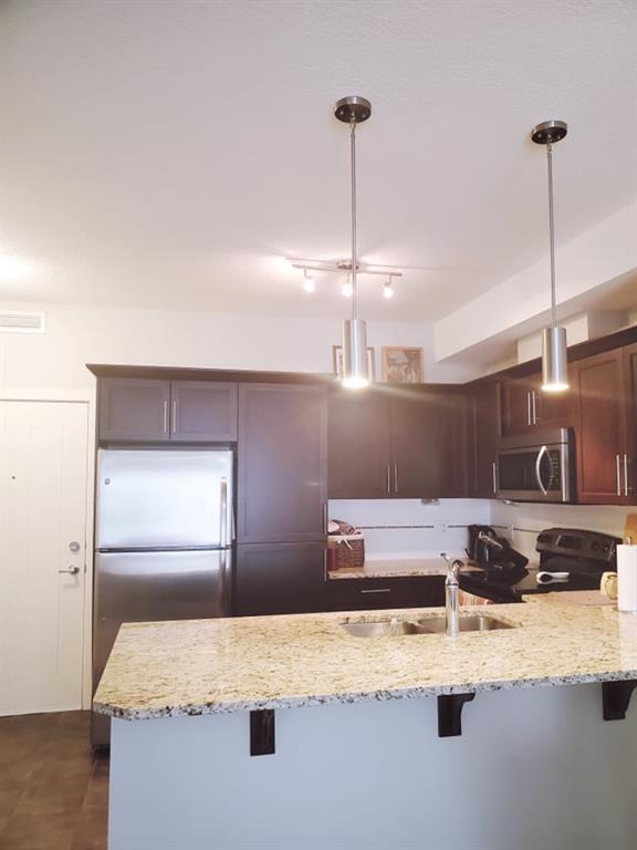 The kitchen features quartz countertops in the kitchen, modern-style cabinets in abundance. The bedroom comes with a view and a large closet space. This unit offers a convenient in-suite laundry with extra built-in storage cabinets. The bath is big and has modern vanity. There is also an assigned storage locker in the parkade. Looking out from your private balcony will remind you of being on holiday with its resort feel and gorgeous uninterrupted views. You are literally steps to all the shopping and dining amenities offered at Royal Oak. (Walmart, Starbucks, Sobeys, Dollarama, and London Drugs) Easy access to Stoney Trail and Deerfoot. Available for immediate possession. Separate titles for the storage and parking space, conveniently located close to the elevators. Also, you could purchase everything that is currently in the condo. This home is a winner & the location can’t be beaten!