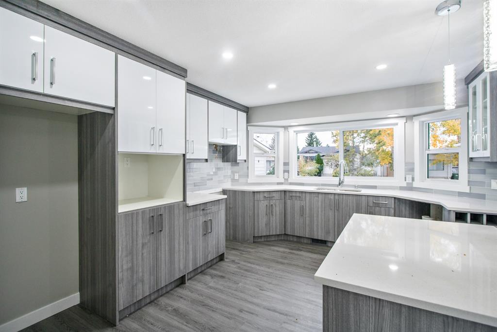 Back on the Market! FULLY RENOVATED! This large 5 Rooms + 3 full baths bungalow has it all. Situated on a quiet street, backing onto green space and the location close to Schools, Community shopping center, Beddington Trail, Deerfoot, and Center street. Welcoming you with tons of natural light, the main floor boasts a Master Bedroom with 3 pc en-suite and 2 other good-sized rooms (1 bedroom and 1 den) along with another full bathroom with a skylight. The living room has a modern electric fireplace and the kitchen has an exquisite design w/ a large island. Brand new roof, garage door, kitchen appliances, skylights, and newer furnace. The basement has 2 bedrooms, a full bathroom, and a rec room with a wet bar. The backyard has a massive deck for you to enjoy your summer BBQs with unobstructed views. This house is move-in ready.