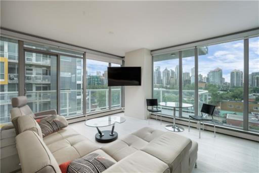 PRICE REDUCTION! Located in the heart of the Kensington, the “Lido” by Battistella! Breathtaking City views! This stunning bright SE corner unit has floor to ceiling windows, that show case amazing views of City skyline and Bow river. The open floor plan is imbued with an abundance of natural light and features Central Air Conditioning, 9′ callings, neutral paint palette and plank flooring.