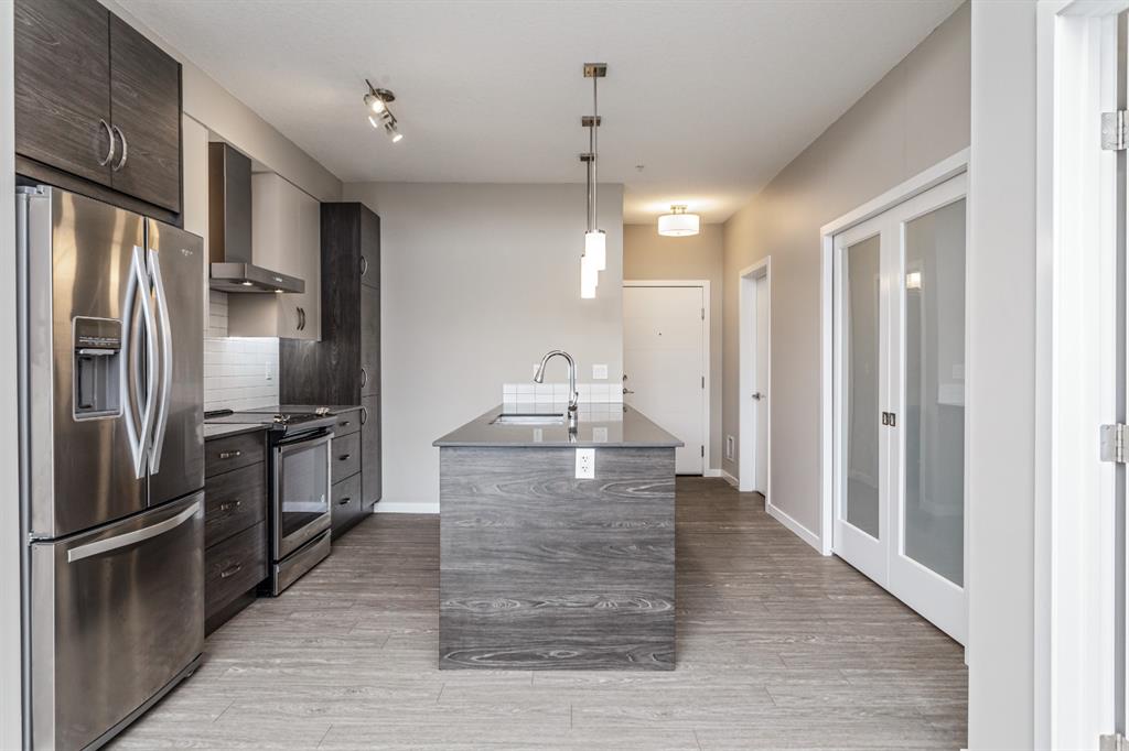 Sunny air conditioned one bedroom + den penthouse – Westman Village – top floor – high ceilings – extra storage locker – private south balcony & main street views! Move in now – Vacant for a quick possession. Check out: Video links of the Village Center – all 3 floors! Resort Living on Lake Mahogany. Wonderful Bright 1 bedroom + Den / 1 bathroom home with an amazing exterior covered deck 12.5′ x 6′ means it’s BBQ time!! SEVERAL UPGRADES – Builder SF = 642, Most popular and requested Grey kitchen Cabinet pallet, MODERN – Stainless steel appliances with a flat top Stove and hood fan, QUARTZ counter tops and in suite storage room plus 4′ x 6′ leased storage locker in Parkade. BONUS: French doors to your multipurpose flex room, 9′ & 11′ ceilings, Air Conditioned, exhaust fan and so much more!! You’ll also enjoy the titled indoor parking stall. Jayman BUILT community with the best location, directly adjacent to Calgary’s largest lake, the last of its kind, award-winning community of Mahogany. Only condo community on a lake. Impressive landscaping matches the picturesque views from your future backyard, with fountains, park benches, bridges, pathways & raised planters. 40,000 sf amenity center speaks for itself. Activities available for all interests & hobbies. Including swimming pool w/ a 2 story water slide, golf simulator, fitness center, movie theatre & so, so much more… 24-hour, 7-day a week security & concierge service. This home features an open floor plan maximizing your lifestyle experience while in true Jayman Core Performance Fit and Finish. All homes include exceptional building specifications including solar panels on every building, forced air, heat +air conditioning, triple pane windows, Vancouver inspired architecture with oversized covered balconies, Hardie board siding with Extensive brick & stone masonry. Truly a one of a kind experience, join the select few who will call Calligraphy their home. Winter eliminated-1292 underground parking stalls just for our residents but also their guests & visitors with extensive pedestrian +15 skywalks & underground passageways. 200 visitor parking stalls located in the heated, underground parkade. 10 short term stay hotel suites, 4 electric dual car chargers, 3 restaurants, Chairman’s Steakhouse our highest amenity & Alvin’s Jazz Club. Plus, Analog Coffee, Chopped Leaf, Village Medical, Mahogany Village Dental, Sphere Optometry, Simply for Life, Moderna Cannabis, The Mash, Marble Slab, Dolphin Drycleaners, 5 Vines & Mode Fitness Studio, Diner’s Deluxe, Pie Junkie, a day care and a medical spa. Amazing $8 Million on the surface & landscaping: 596 Trees, 8019 shrubs, 1940 grasses, 4292 perennials, 10 fountains onsite!