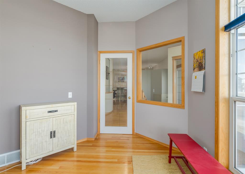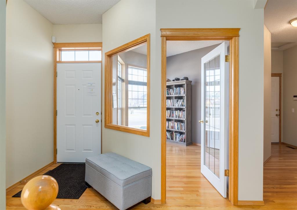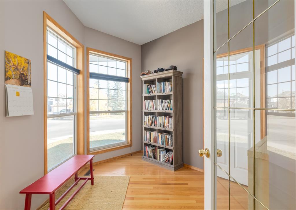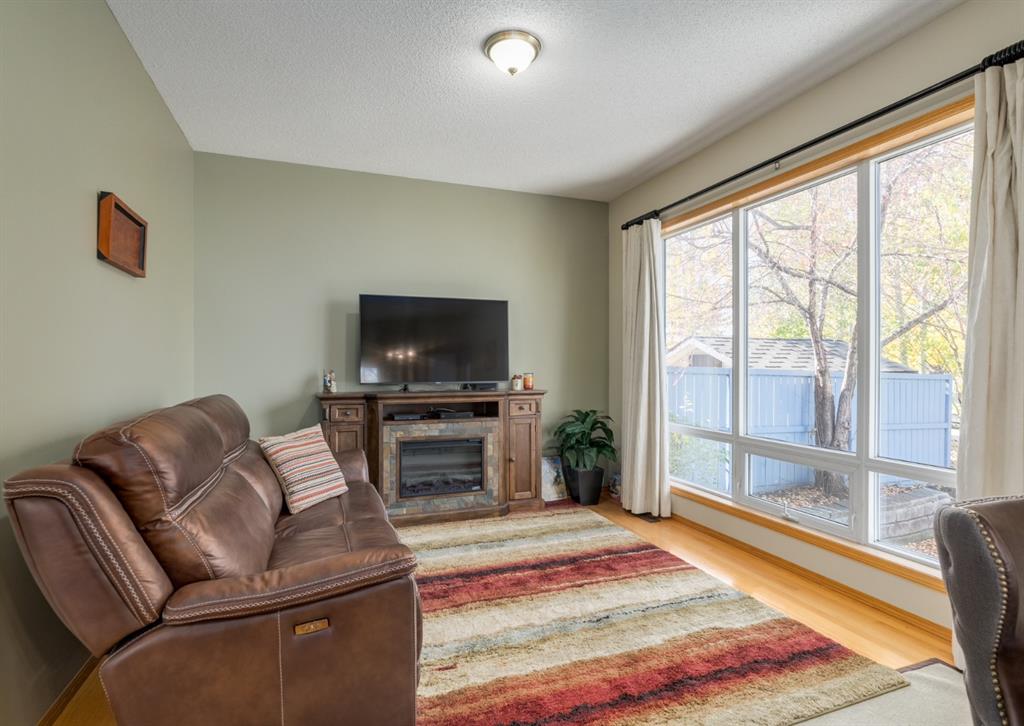 Riverbend Bungalow backing on to a greenspace! This well maintained 1100+ sq.ft home boasts a main floor den, hardwood floors and an open floorplan. The spacious kitchen has plenty of cabinets and counter space, a central island with raised breakfast bar, stainless steel appliances, pantry and over looks the family room and dining room with direct access to your covered deck and west facing backyard. The primary bedroom has a 4 piece ensuite with jetted tub and separate shower. There is a 2 piece bath to complete this level. The fully finished basement has plenty of large windows and has a rec room with corner fireplace, a 2nd bedroom, 3 piece bath, laundry room cedar and plenty of storage space. Your fully fenced backyard has the covered deck, patio and access to the greenbelt behind, The double attached garage has been drywalled and is heated and the corner lot allows for plenty of parking for your guests. Located close to the river pathways, schools and the amenities of Quarry Park, this home is not be missed, call today for a viewing!