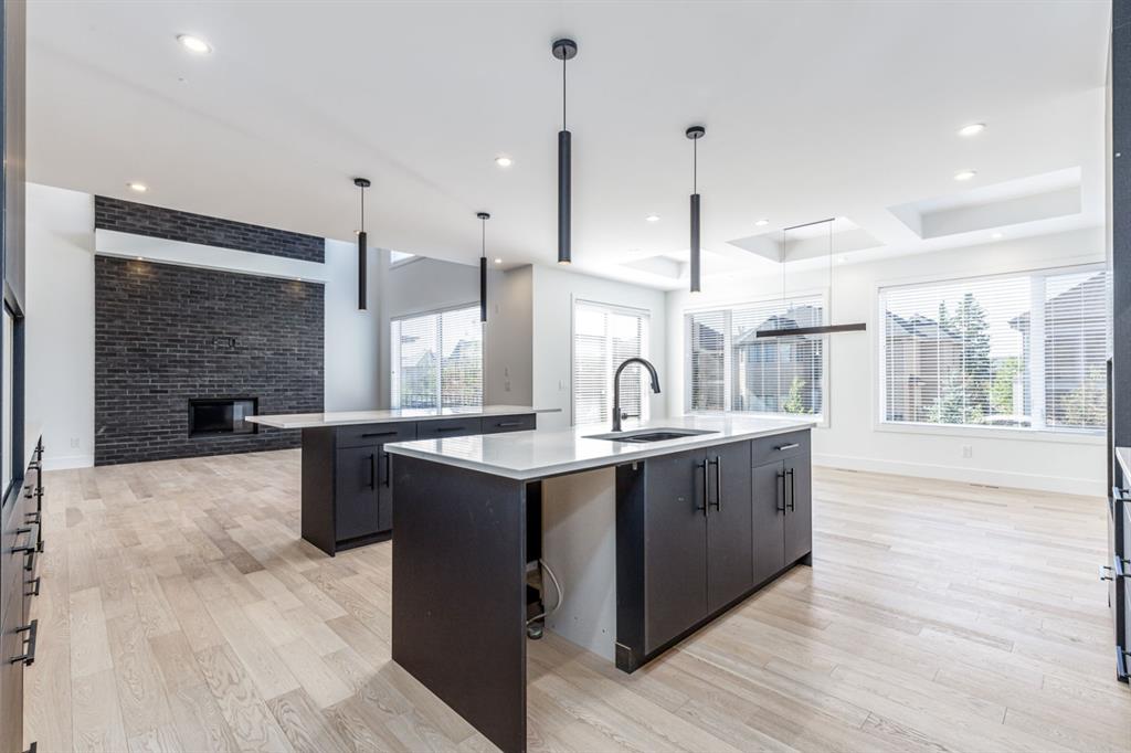 Welcome to this Truman built show home which is part the exclusive West District enclave of 11 contemporary single family homes. This 3 bed, 3.5 bath features over 3200 SF of designer living space, an upper level bonus room and an envious triple attached garage. Discover a spacious open concept interior with luxury wide plank flooring throughout. The living room has oversized two-story windows and a gorgeous full height gas fireplace wall feature, which is open to the gourmet kitchen featuring dual islands, quartz counters and dramatic black backsplash, upgraded Fisher Paykel appliances and Kohler hardware. Not to mention the butler’s pantry with convenient walk-through to the garage entry and mud room with bench and built-in lockers. You’ll love the sun drenched eating nook with access to the large patio. Upstairs discover a spacious bonus room with unique ceiling feature, 3 spacious bedrooms each with walk-in closets and vaulted ceilings, and convenient upper laundry. Relax in the master retreat and savour the spa-inspired 5 pc ensuite including soaker tub, dual vanities and oversized rain shower. The lower level walkout is ready for your personal touch. You’ll love the triple car garage with glass inserts to let in plenty of light, large south facing backyard and this home’s ideal location steps to Central Park. Sought after WestSprings is a stone’s throw from the Rockies, 15 minutes to Downtown and close to Calgary’s best schools, shopping, recreation and so much more.