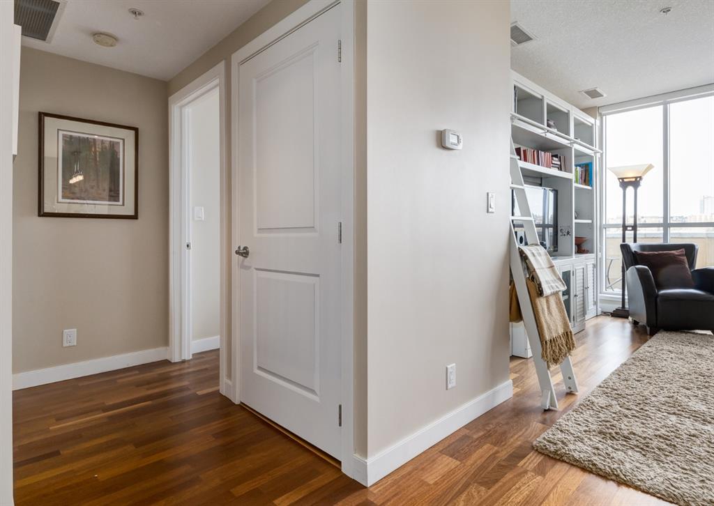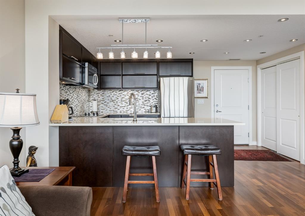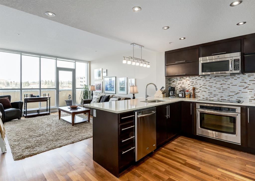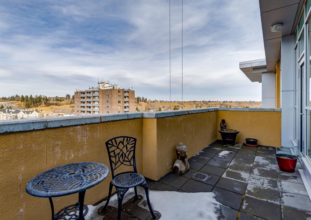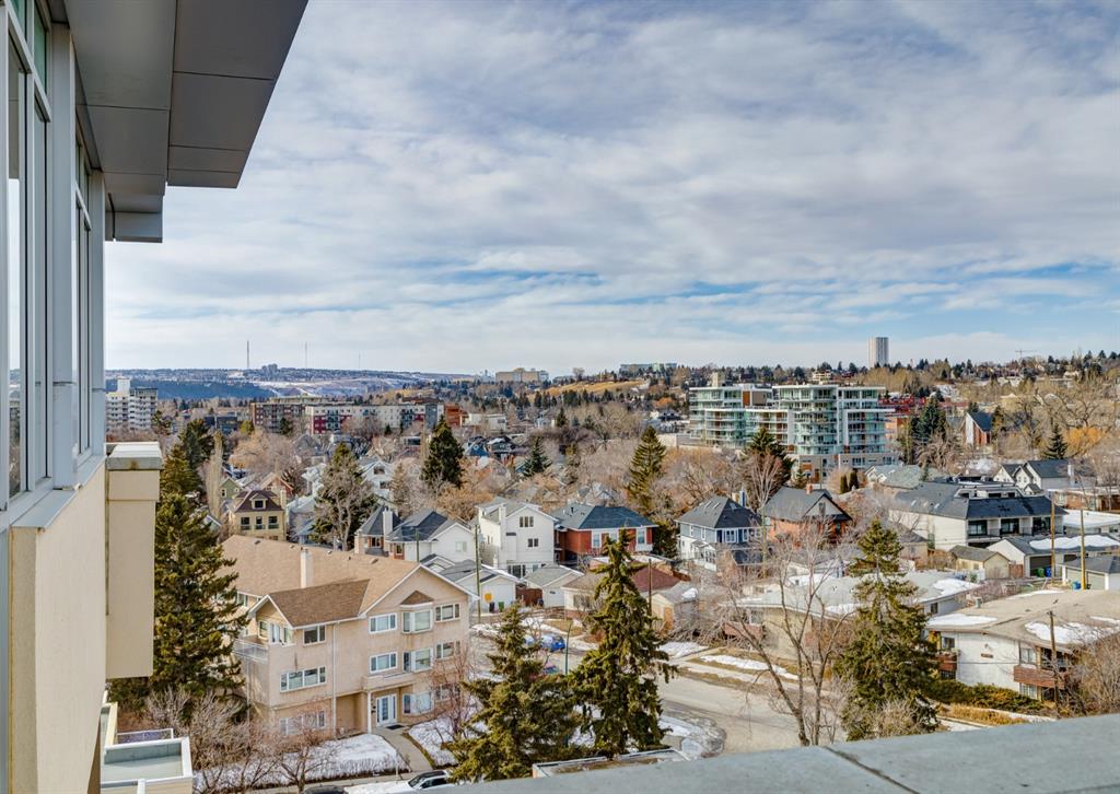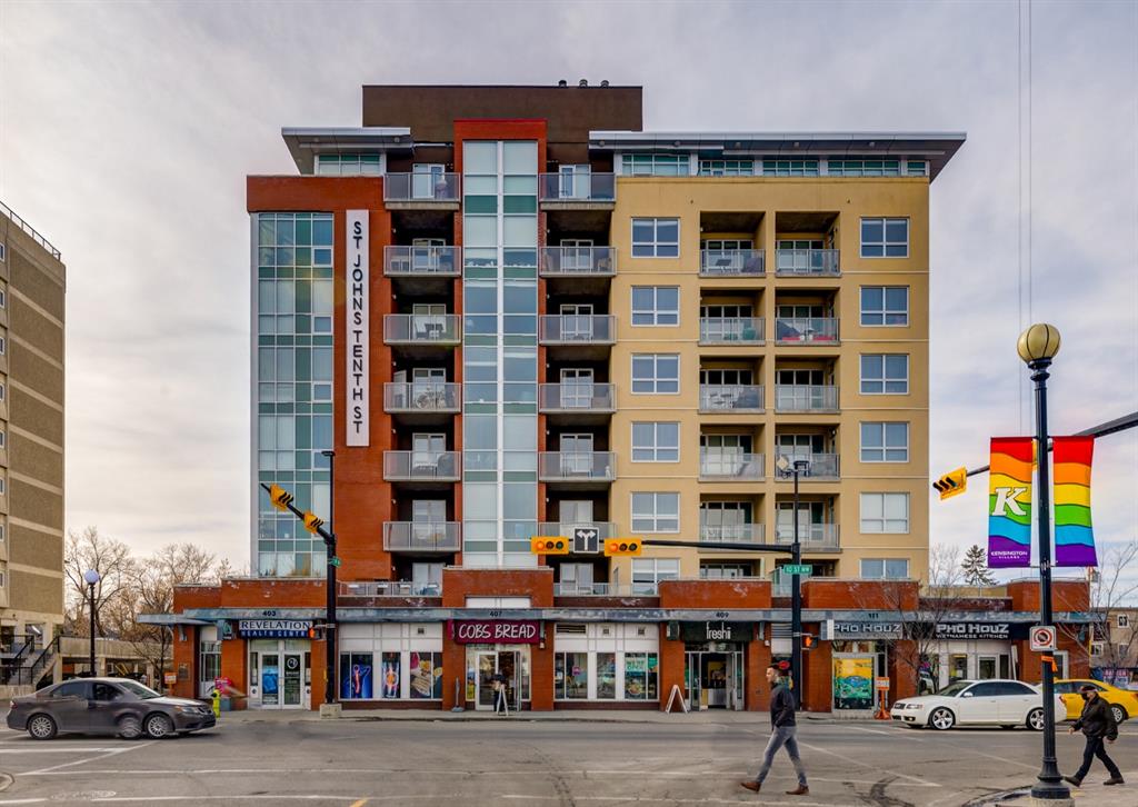 Welcome to this stunning penthouse residence that shows like new. Atop this iconic Kensington development is your private oasis perfect for relaxing and rejuvenating. Focusing on natural light via floor to ceiling windows, this condo features 9-foot ceilings, hardwood floors, an open kitchen with top-of-the-line appliances, quartz countertops, dine at island, and a spacious yet cozy living room with a patio door opening to an impressive 21′ x 7′ balcony, where you can enjoy beautiful sunsets and late afternoon cocktails. The primary bedroom with a walk-in closet offers more windows providing a sense of space and openness, and privacy from the world’s bustle below. Additional amenities include in-suite laundry, one titled indoor parking stall in the secure underground heated garage, a storage locker, wheelchair access and visitor parking. The plethora of neighbourhood amenities includes grocery stores, cafes, eclectic shops, restaurants, LRT, Bow River Pathway, parks and a quick commute to downtown. This is a unique and innovative place to live.