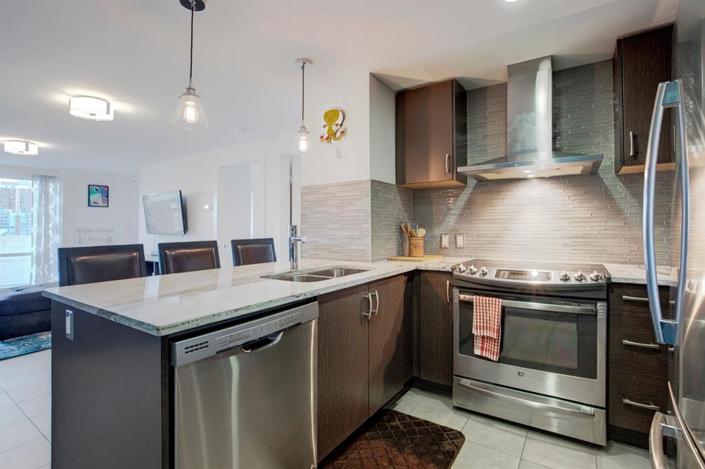 YOU’LL FEEL ON TOP OF THE WORLD- Incredible WEST facing VIEWS of the Mountains and Memorial Park. This property has a great LAYOUT & ELEGANCE to live your downtown dream! The front entry is private so no one can look into your unit!! Here you will find a FANTASTIC 3 piece bath and access to your DEN/HOME OFFICE. This leads you into your open concept living space. TALL ceilings and big windows appointed to take in your VIEWS. The kitchen is well equipped with stainless steel appliances, GRANITE countertops and eating bar – Your PRIMARY bedroom has ample space, a walk-in closet that leads to your own ensuite bath and a beautiful view of Memorial Park. The space includes an additional good-sized bedroom and access to your private BALCONY from your living room with VIEWS GALORE. This Two bedrooms plus a den unit has a lot to offer, in suite laundry, beautiful finishing’s throughout, building amenities that can save you money including, awesome gym, bike room, titled underground heated secure parking with storage cage, plenty of visitor parking for your guests, a guest suite you can rent if your guests decide to stay and more. Walking distance to SO MUCH… Do not miss out on this one – Book your showing today!